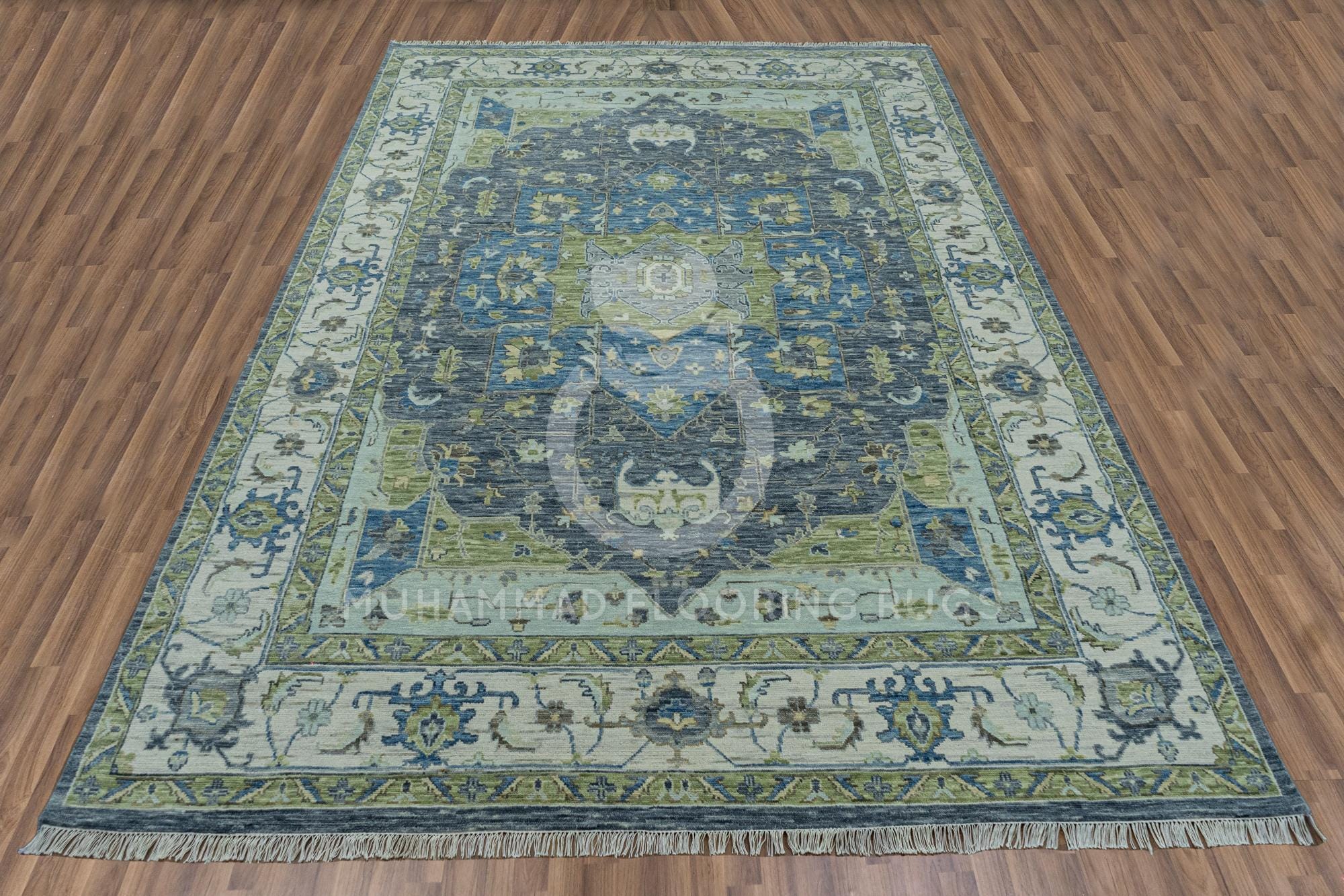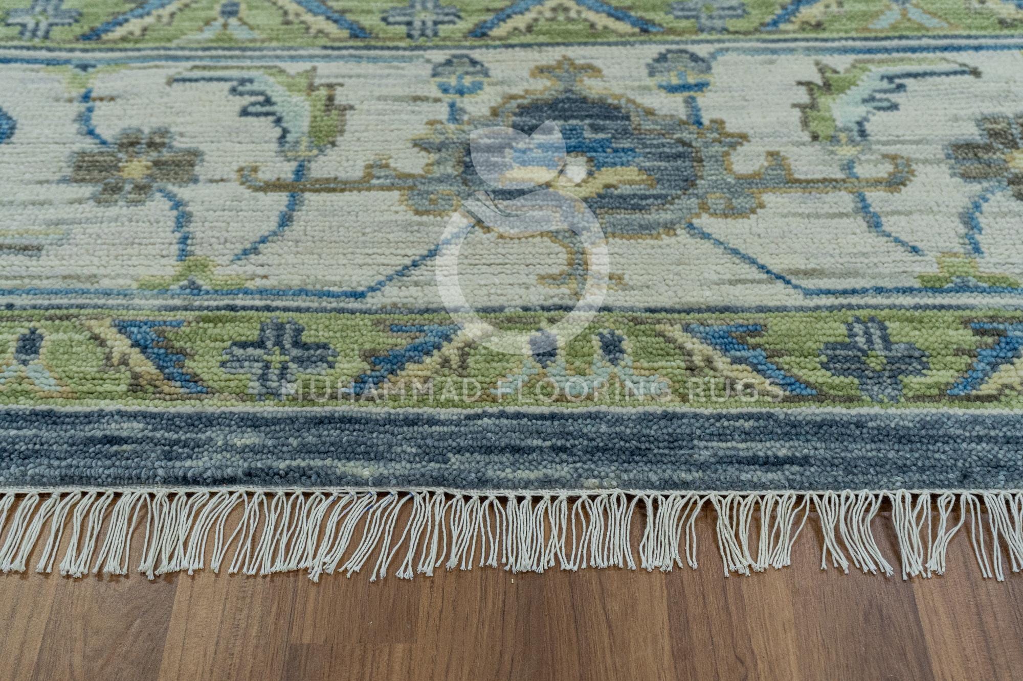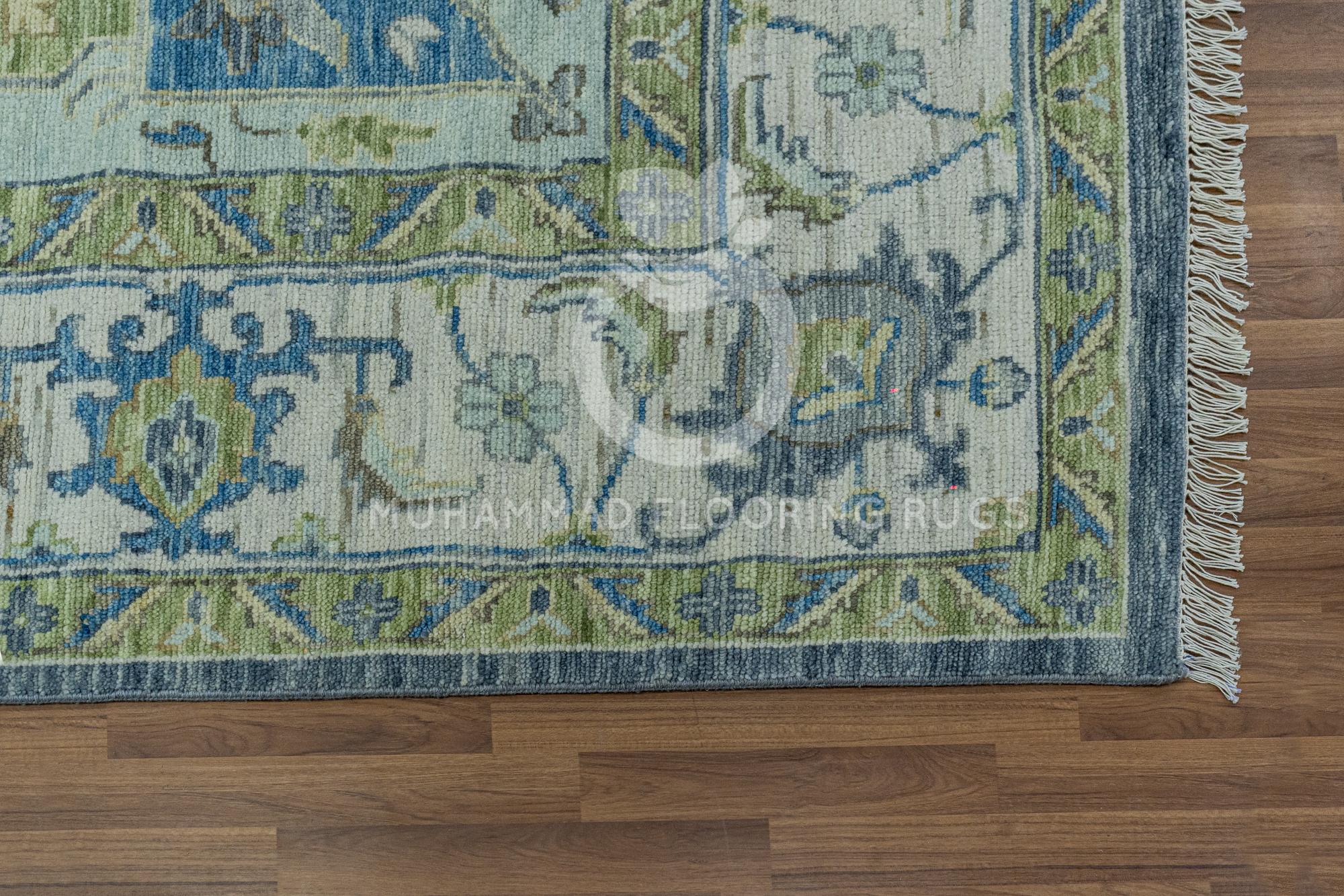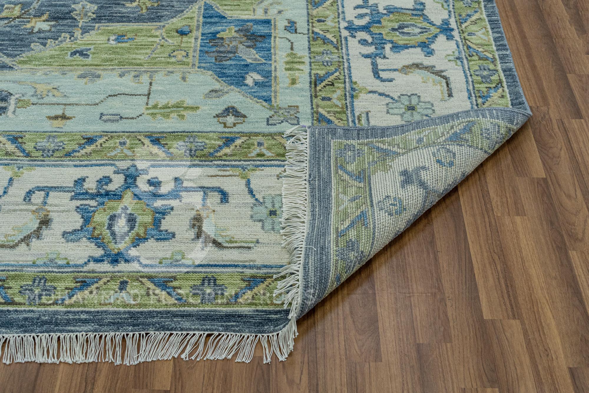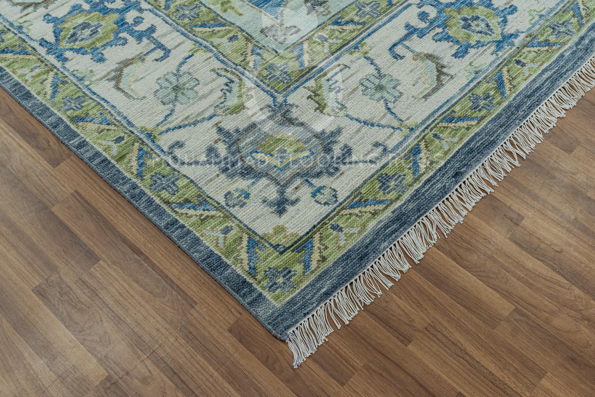 Elegant Gray and Blue Oushak Wool Rug: Handwoven Large Area Rug Serene Harmony Handwoven Oushak Wool Rug in Gray, Sage, Cream, Blue