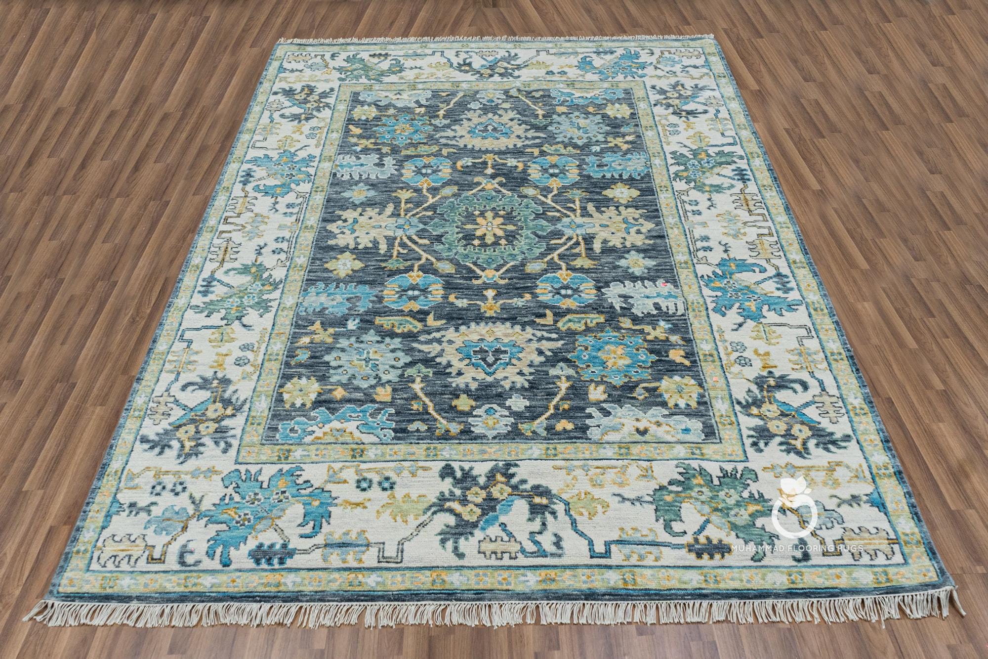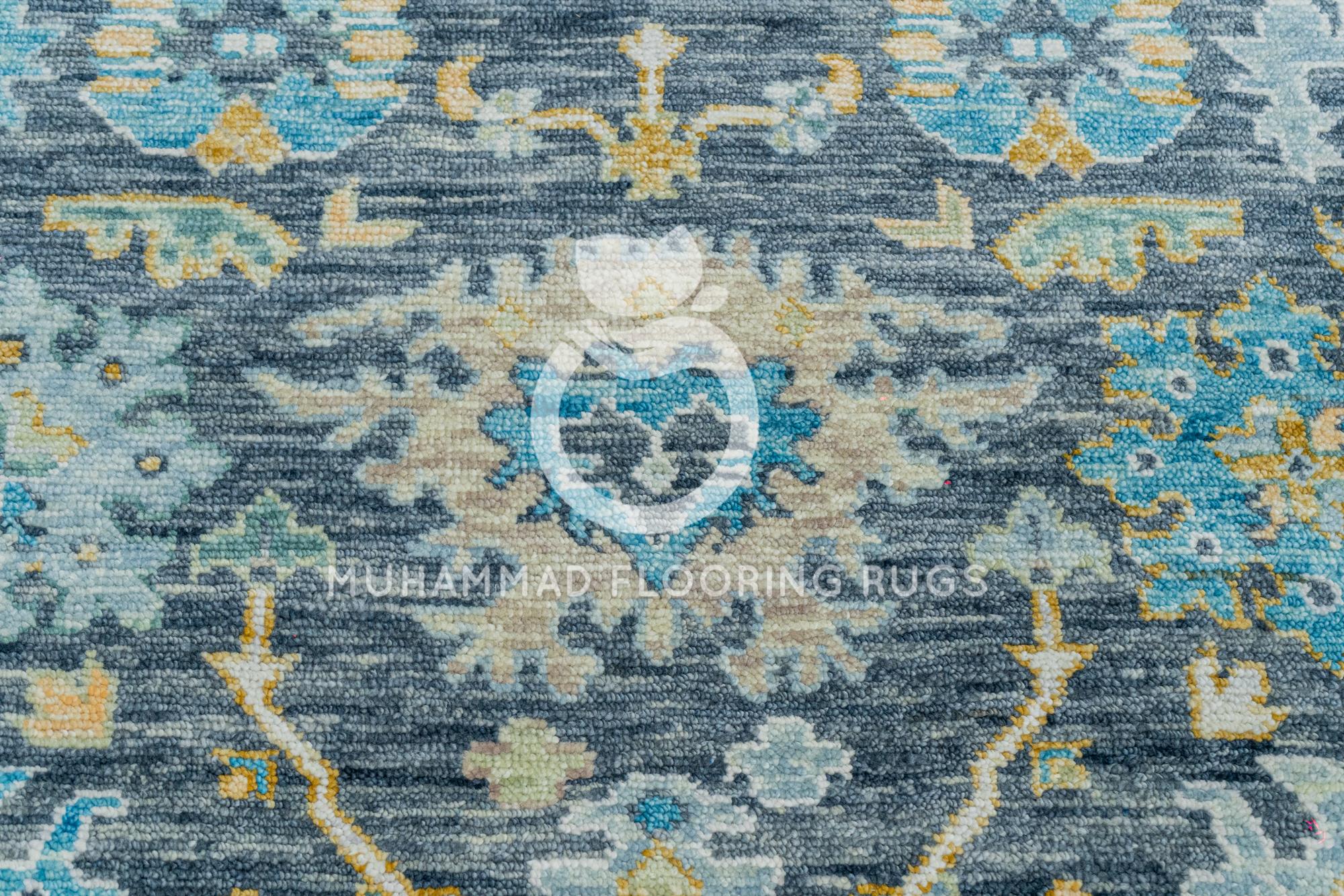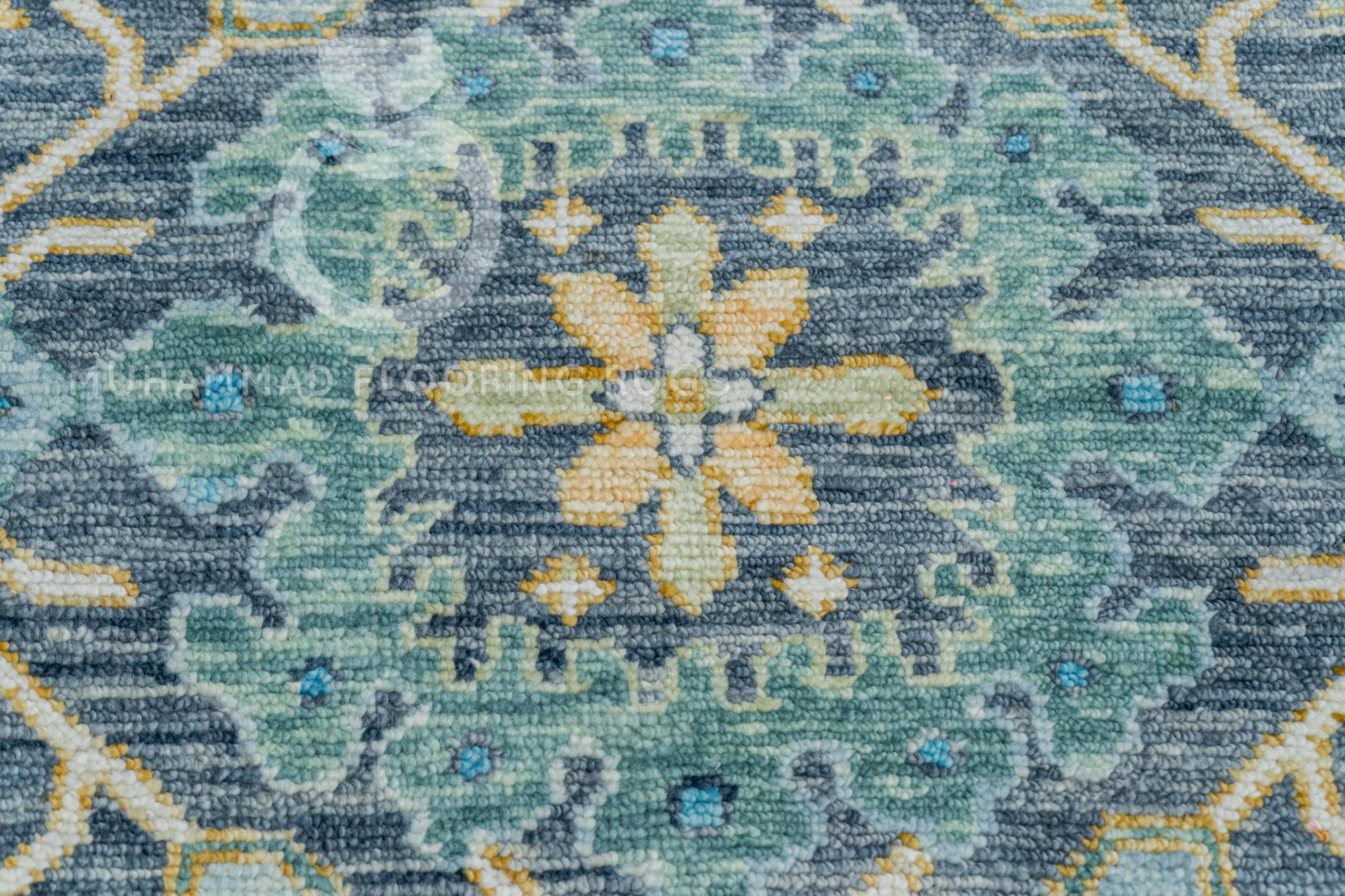 Handcrafted Turkish Medallion Rug - Elegant Gray and Blue Design Large Turkish Area Rug with Timeless Medallion Pattern - Gray and Yellow