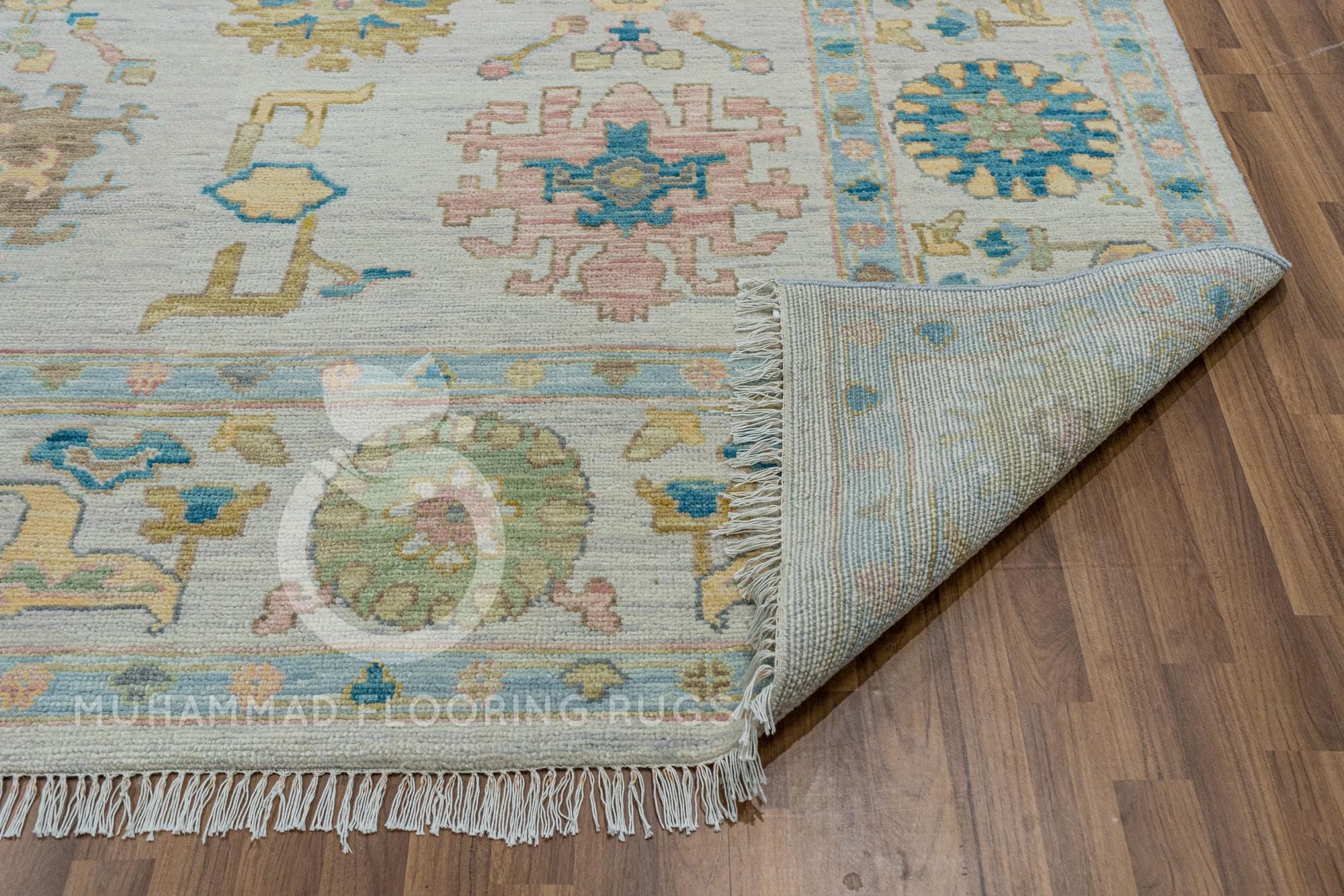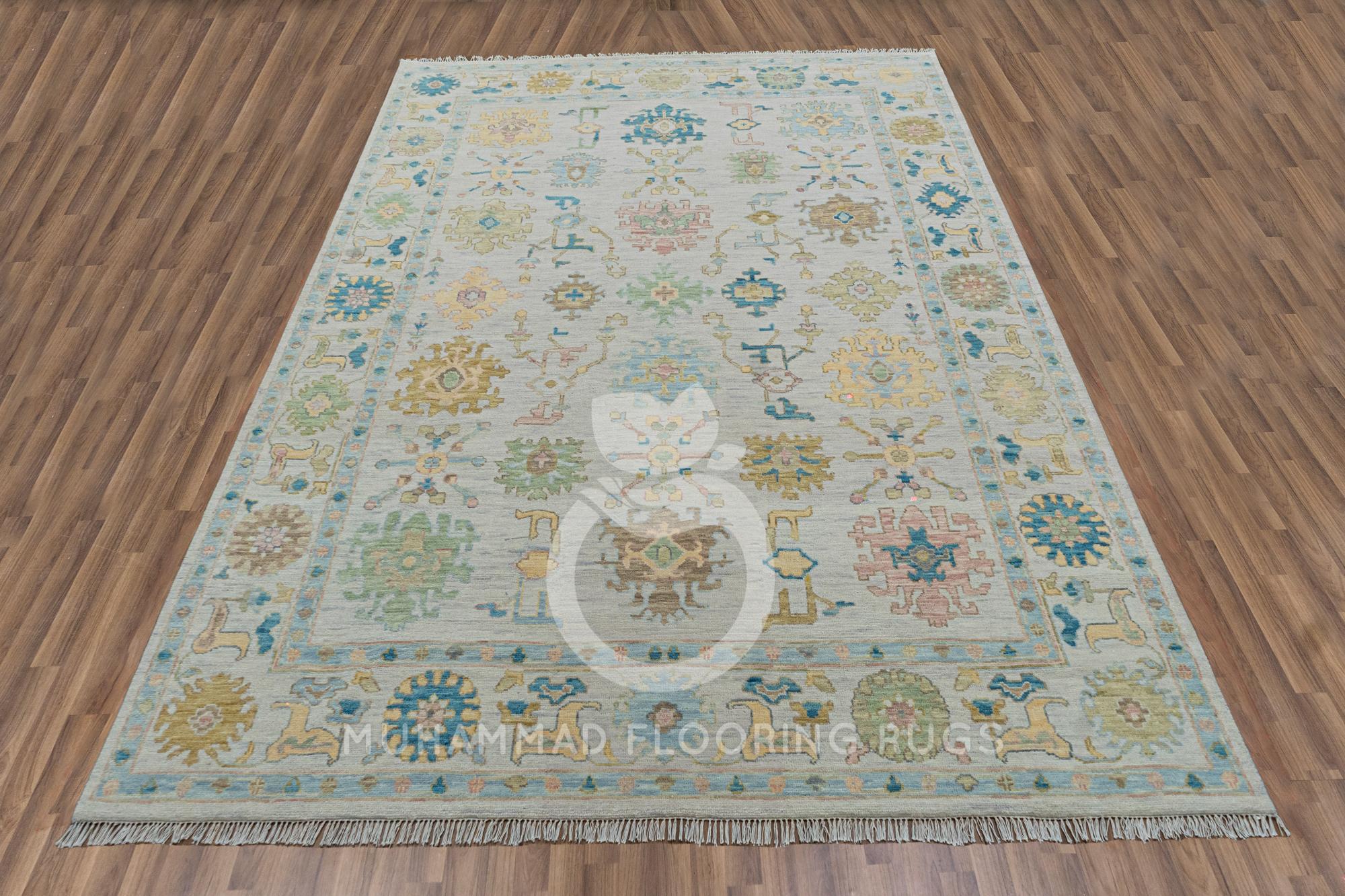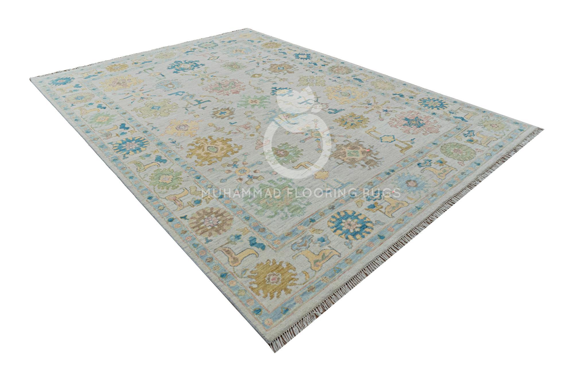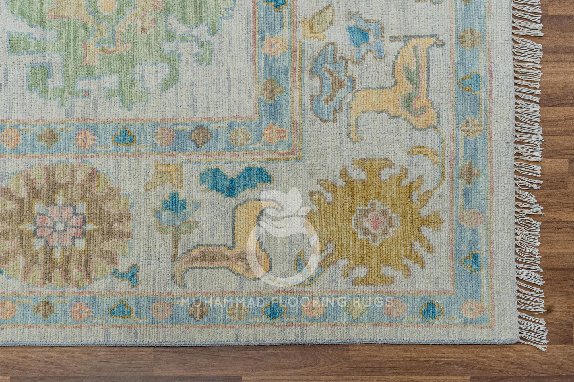 Elegant Oushak Area Rug: Handmade Turkish Wool in Soft Pastel Hues - Perfect for a Traditional Living Room Luxurious Turkish Oushak Rug