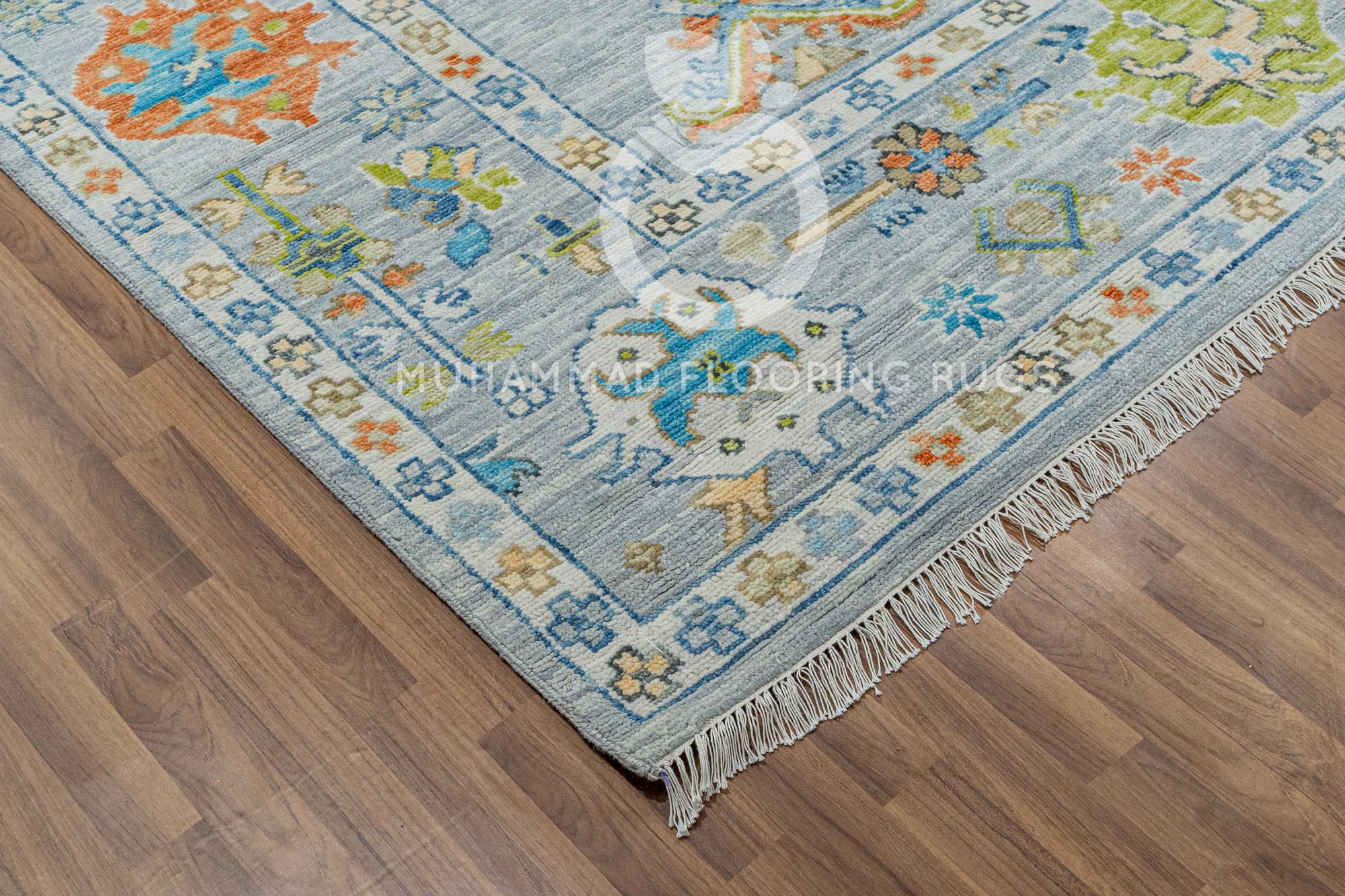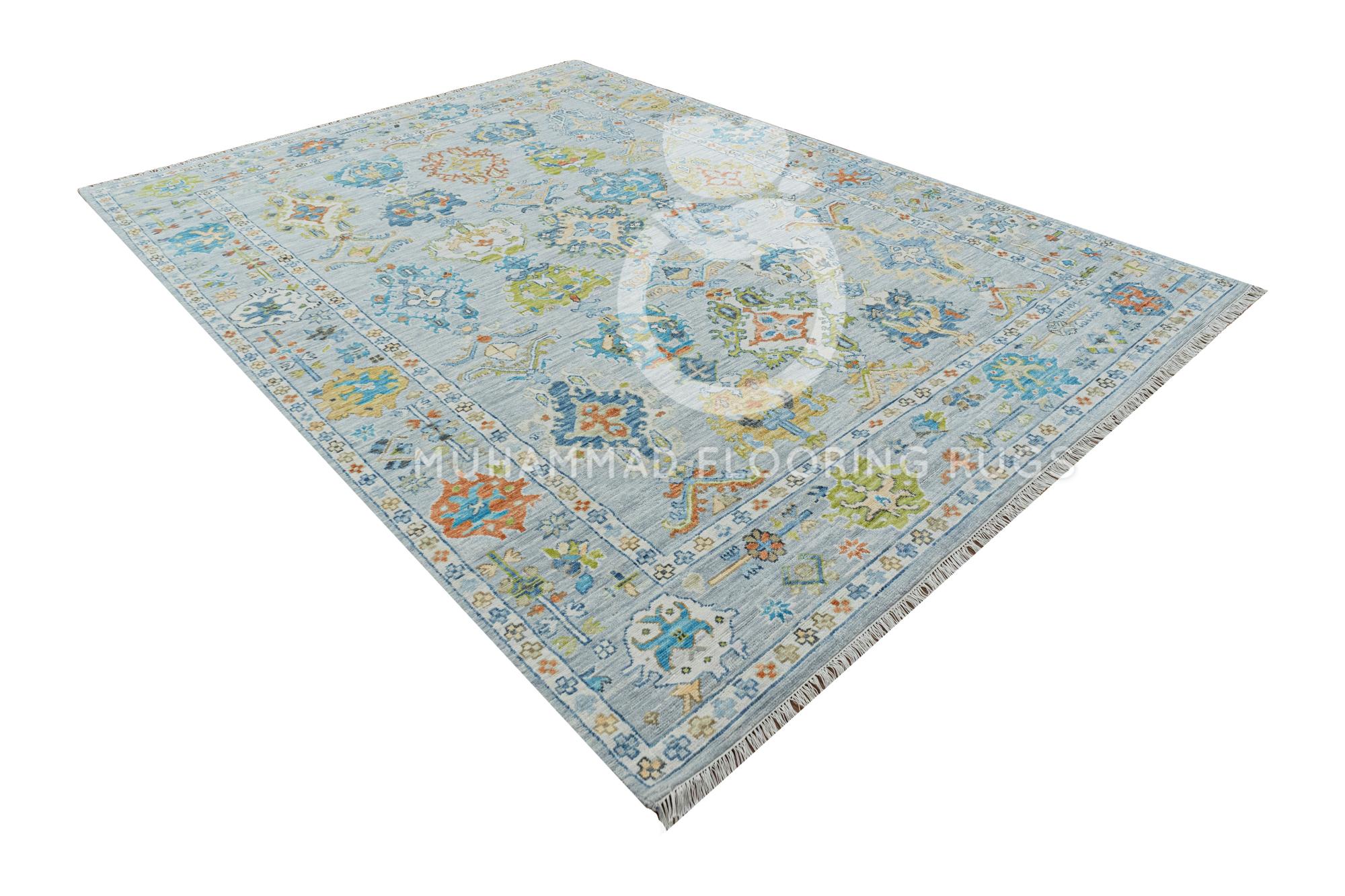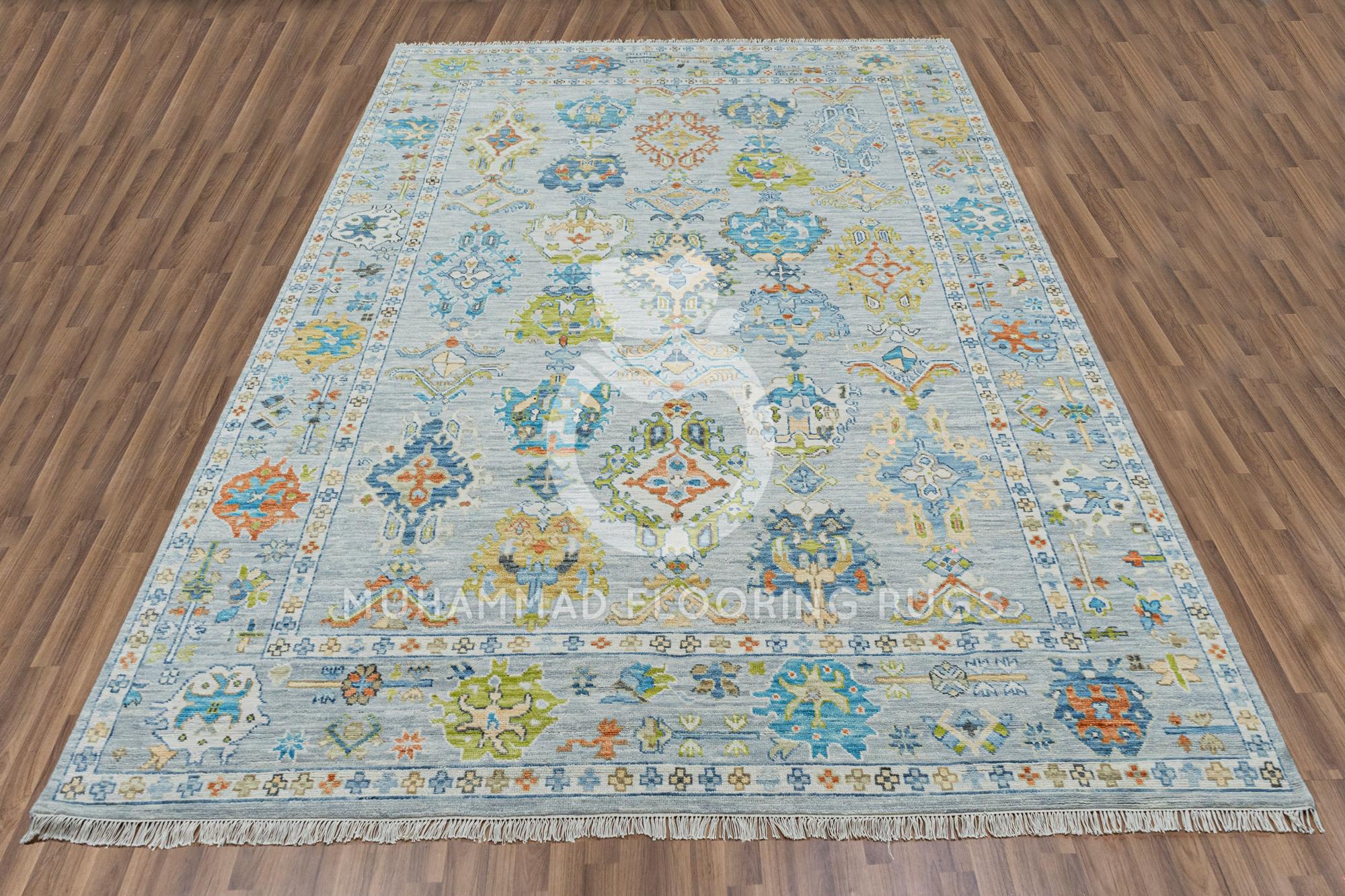 Unique 9x12 Oushak Wool Rug Vibrant Vintage Turkish Carpet in Blue, Green, and Orange Beautiful Handmade Oushak Area Rug: 9x12 Turkish