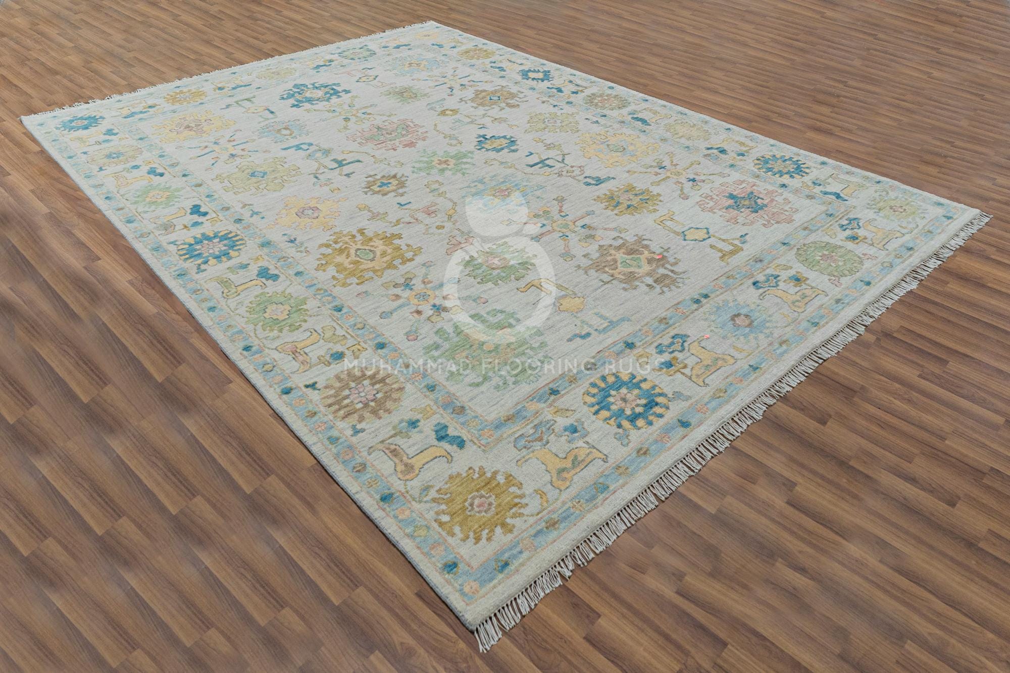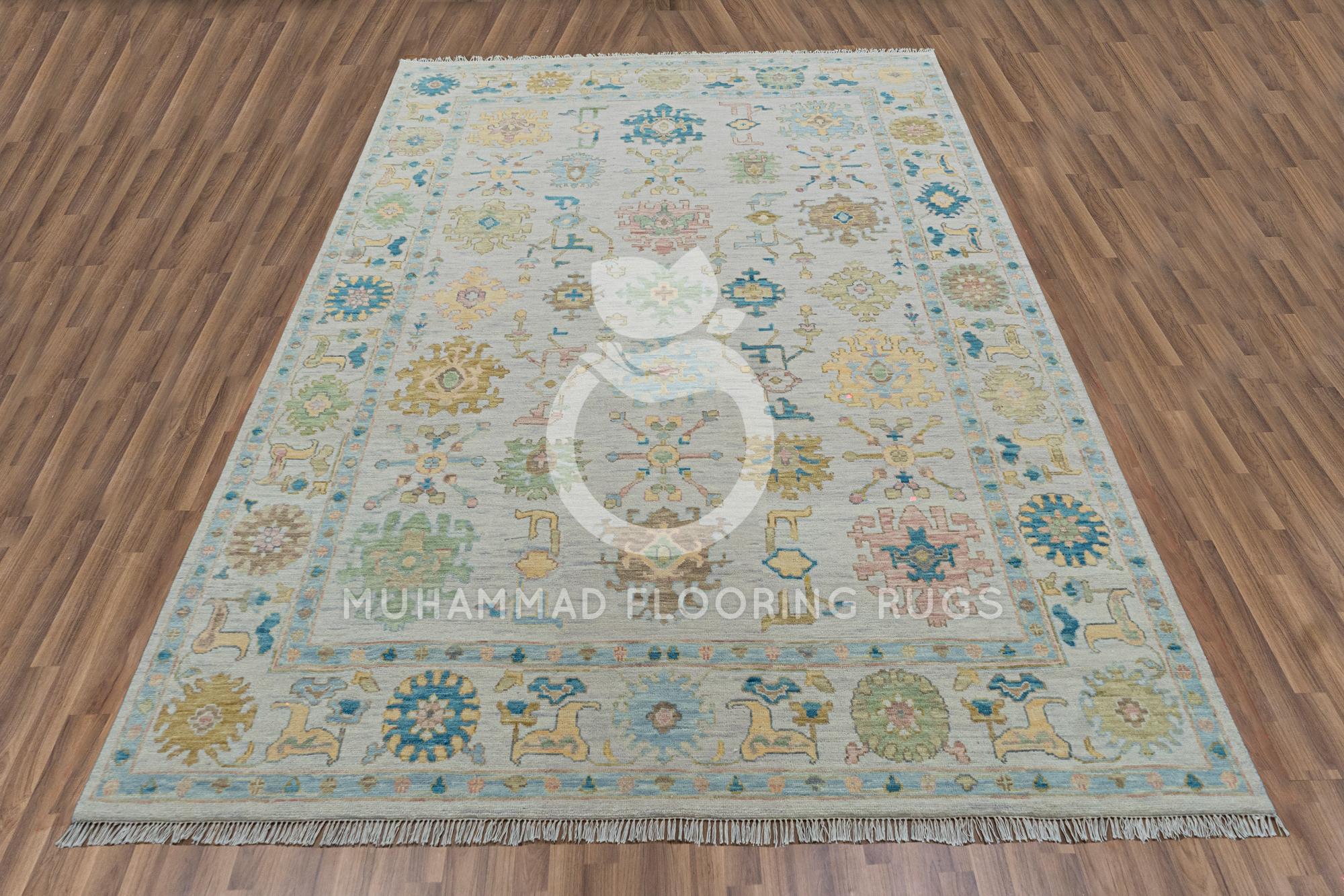 Hand knotted Elegance: Large Turkish Oushak Rug in Traditional Oriental Style, 8x10 Cozy up Your Space with a Hand-Knotted Wool Oushak Rug