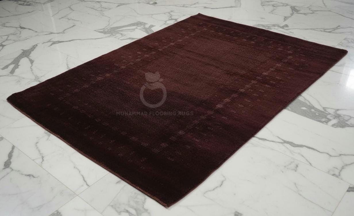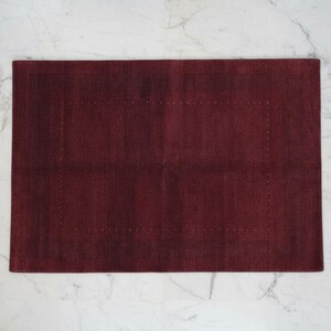 Unique Gabbeh Loribaft Burgundy Wool Rug - Hand-Knotted Bohemian Chic Cozy Hile Pile Wool Rug in Rich Burgundy - Traditional & Stylish