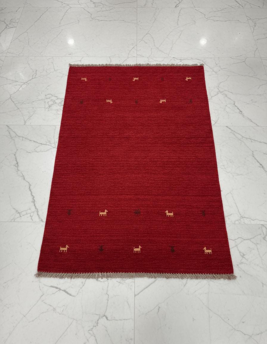 Red Handloom Wool Rug | Handwoven Area Carpet | Boho Minimalist Decor for Living Room & Bedroom