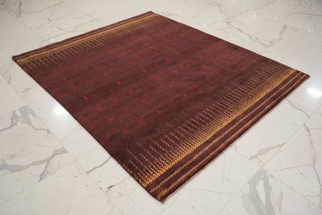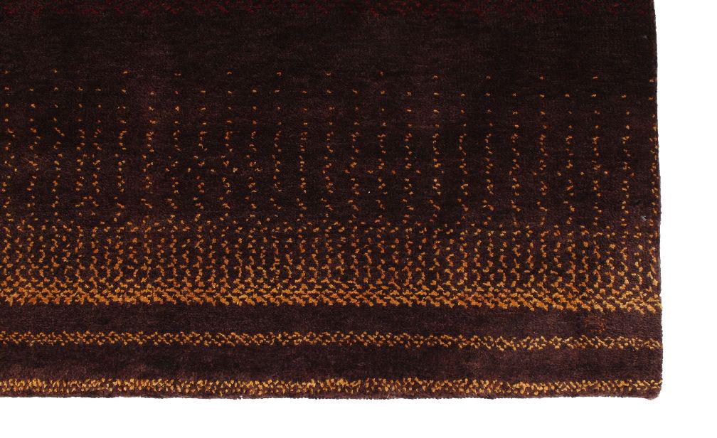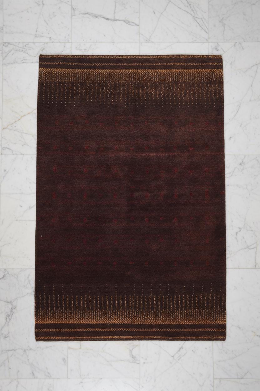 Modern Wool Rug in Rich Brown with Mustard Accents - Handwoven Gabbeh, Artisan Crafted Minimalist Chic Area Rug - Rich Brown Gabbeh