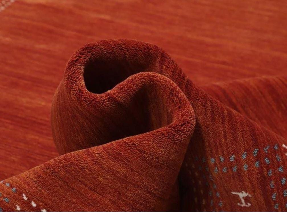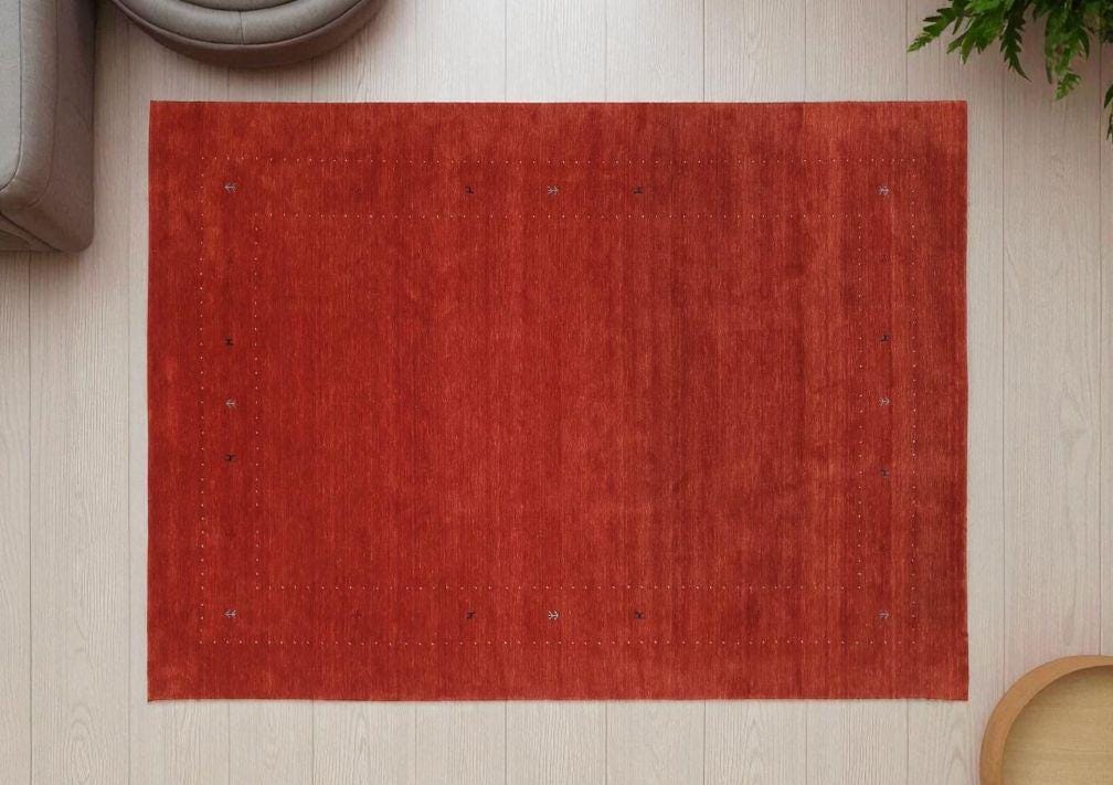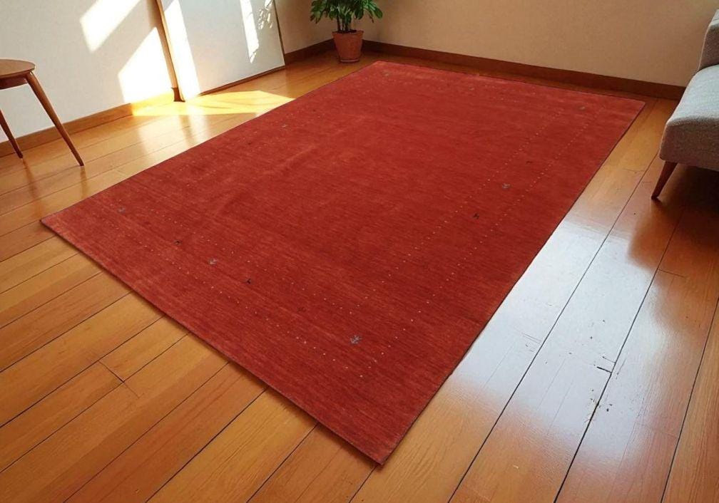 Boho Chic Rust Red Geometric Wool Rug Handwoven Vintage Tribal Accent (8x10) Eye-Catching Red Gabbeh Area Rug: Handmade Geometric Pattern
