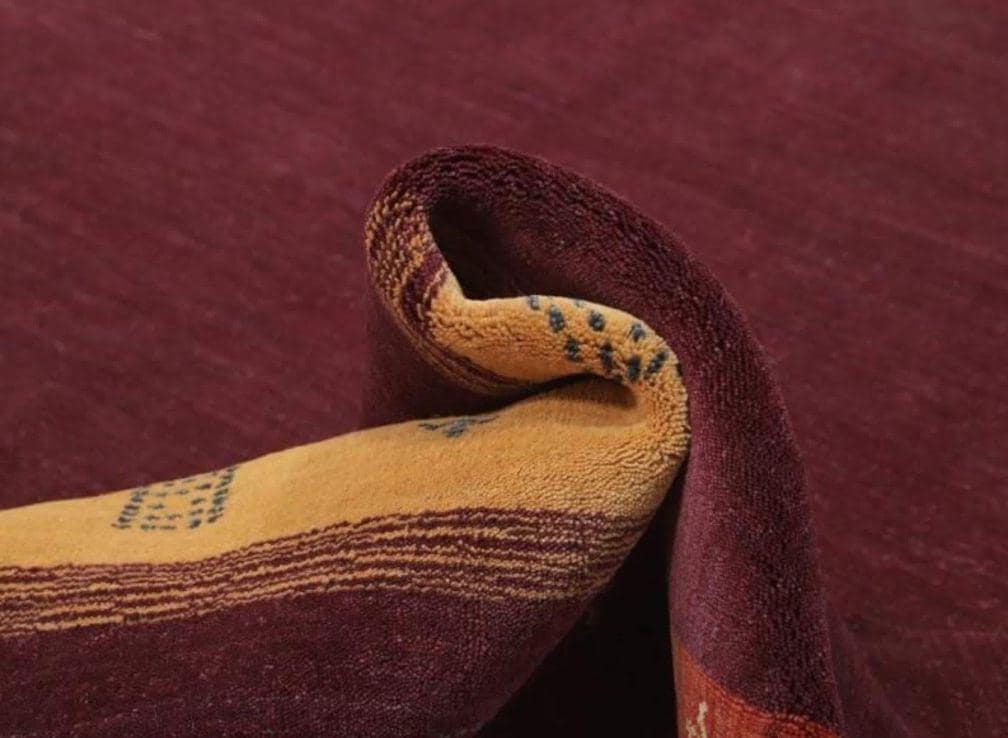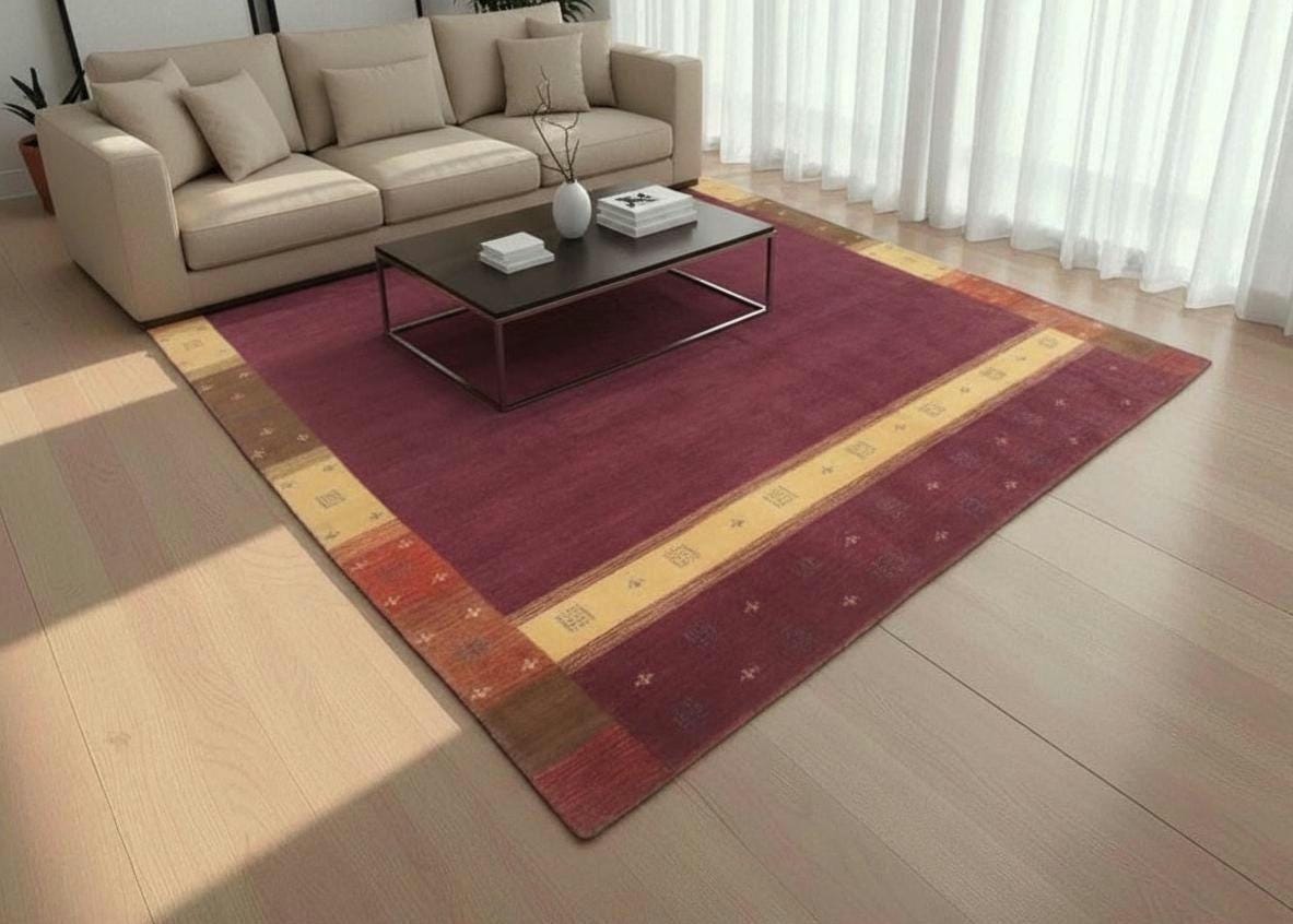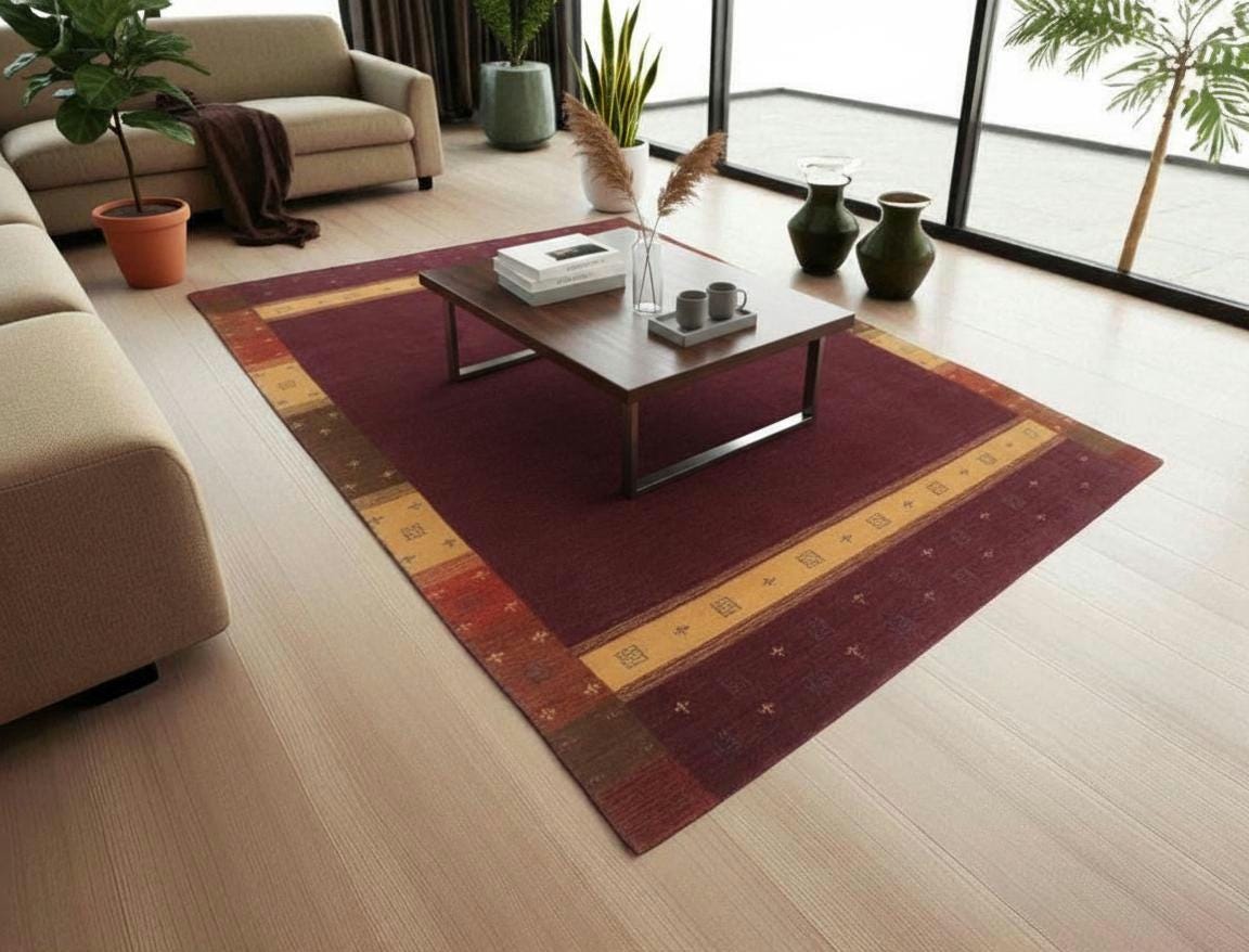 Handmade Burgundy Wool Rug: Modern Boho Bordered Carpet Handloom rug design rug knot rugs