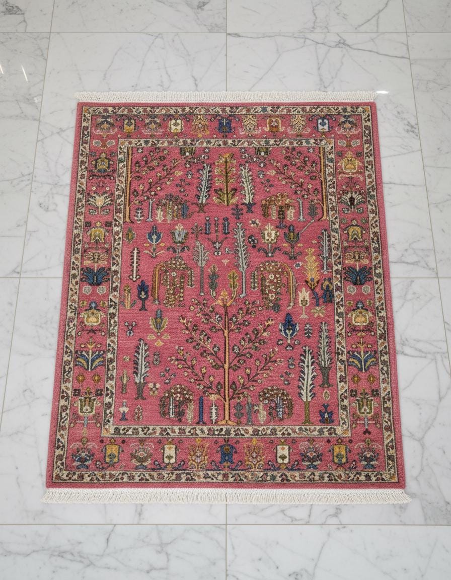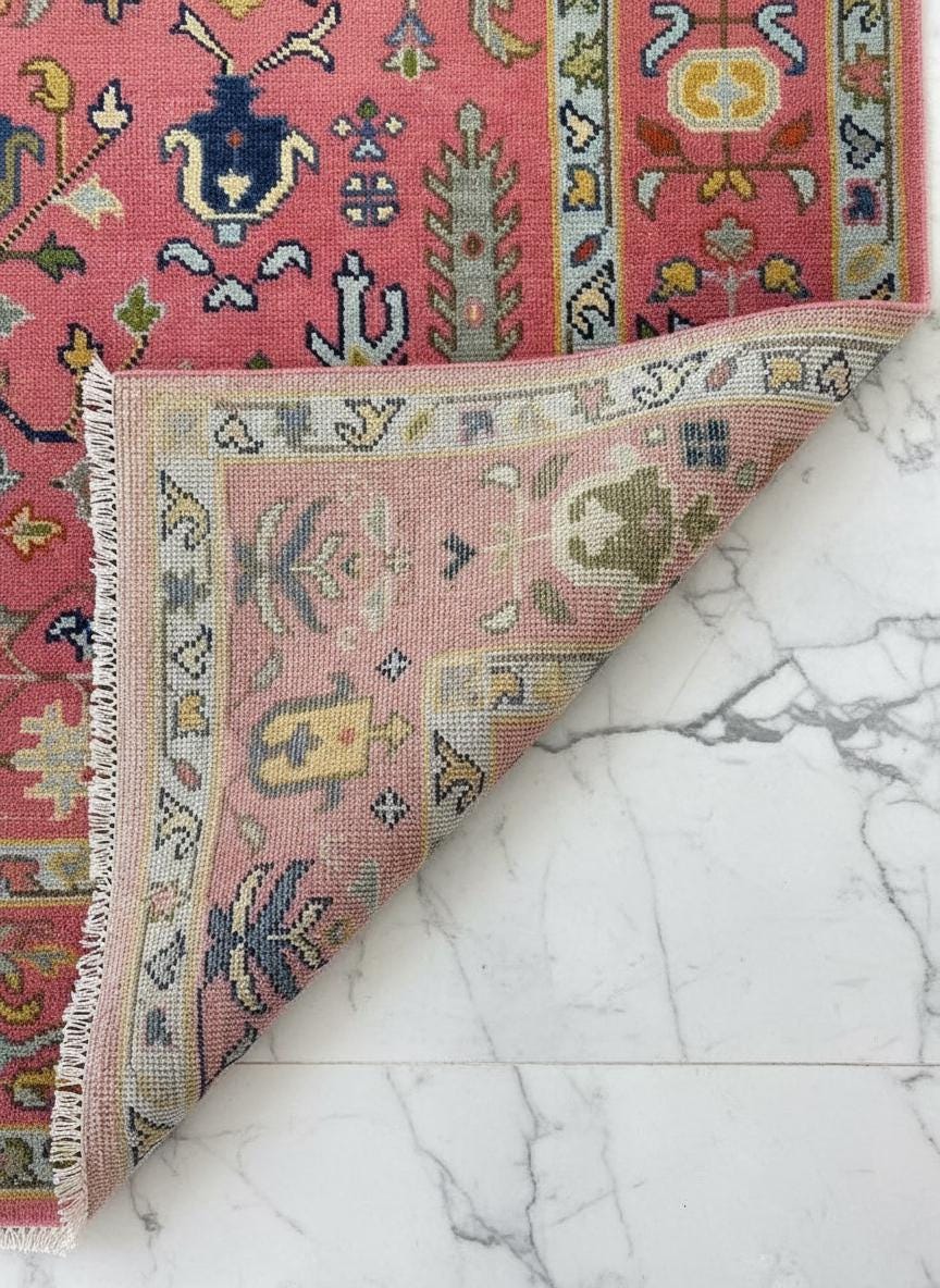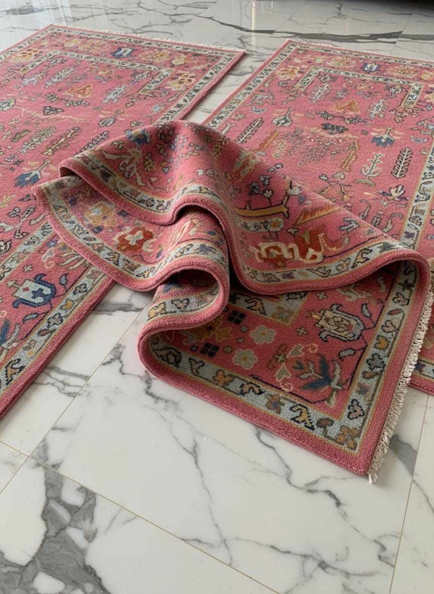 Artisan Pink Wool Rug - Handcrafted Turkish Oushak with Bohemian Flair, Ideal for Bedroom and Living Room Decor Turkish-Inspired Pink Flor