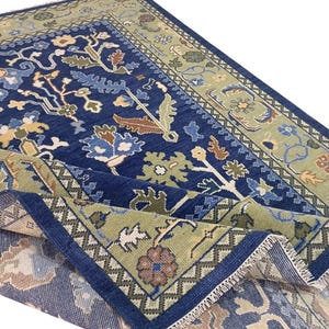 This expertly crafted hand made Oushak vintage handknotted rug is made with High Quality wool by artisan rug makers.
