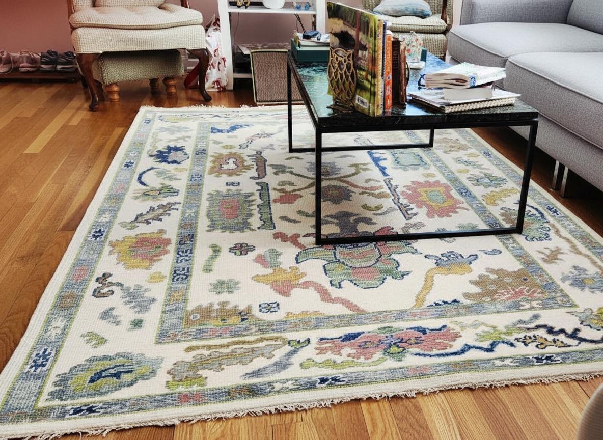 This expertly crafted hand made Oushak vintage handknotted rug is made with High Quality wool by artisan rug makers.