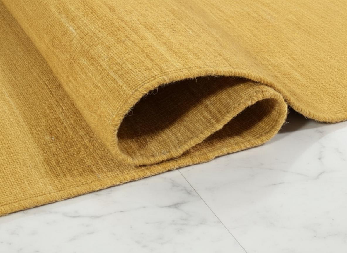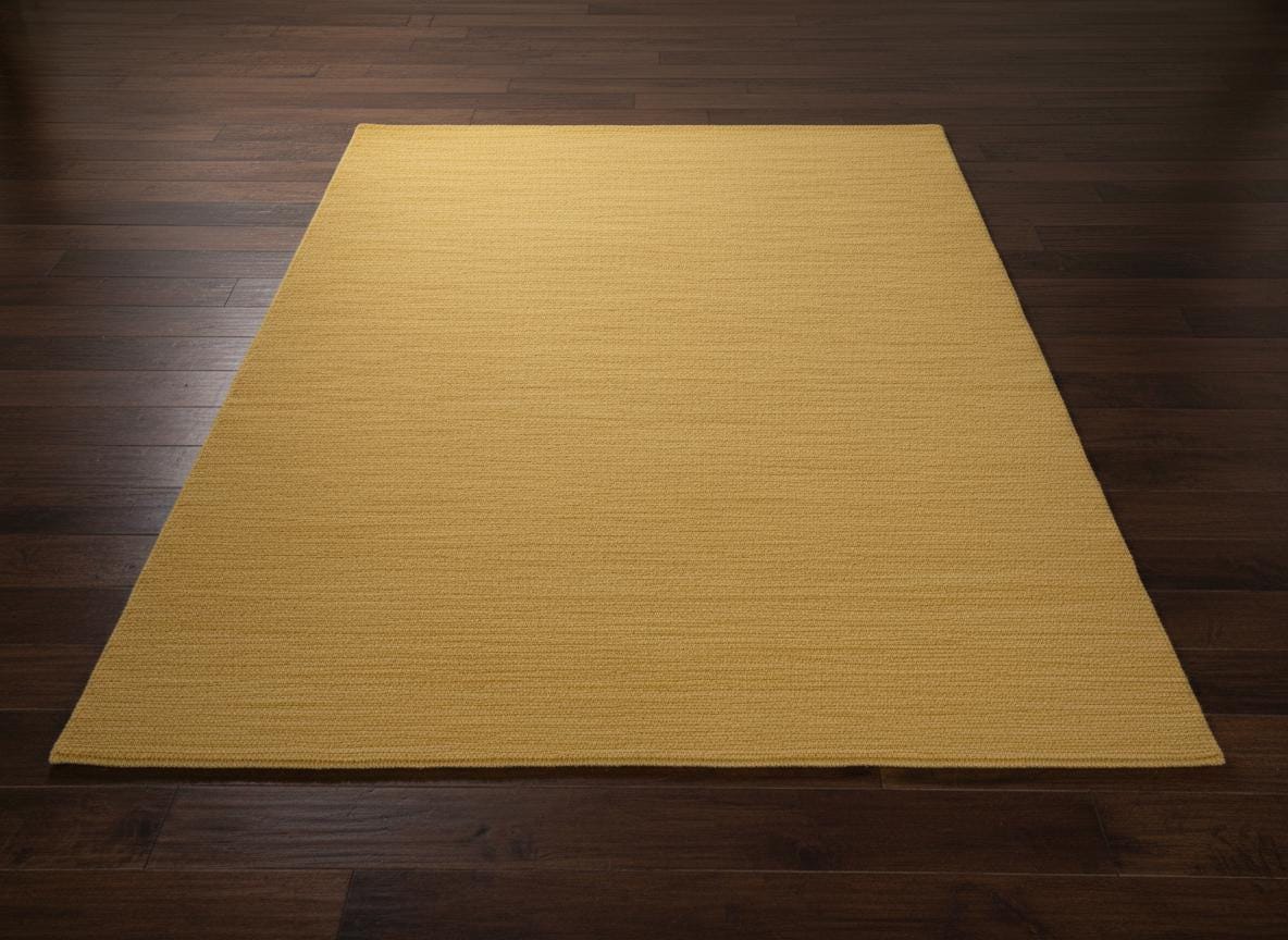 Sunny Yellow Handloom Dhurrie Rug - Stylish 8x10 Modern Wool Flatweave - Custom Minimalist Area Rug for Living Room Vibrant Yellow Solid