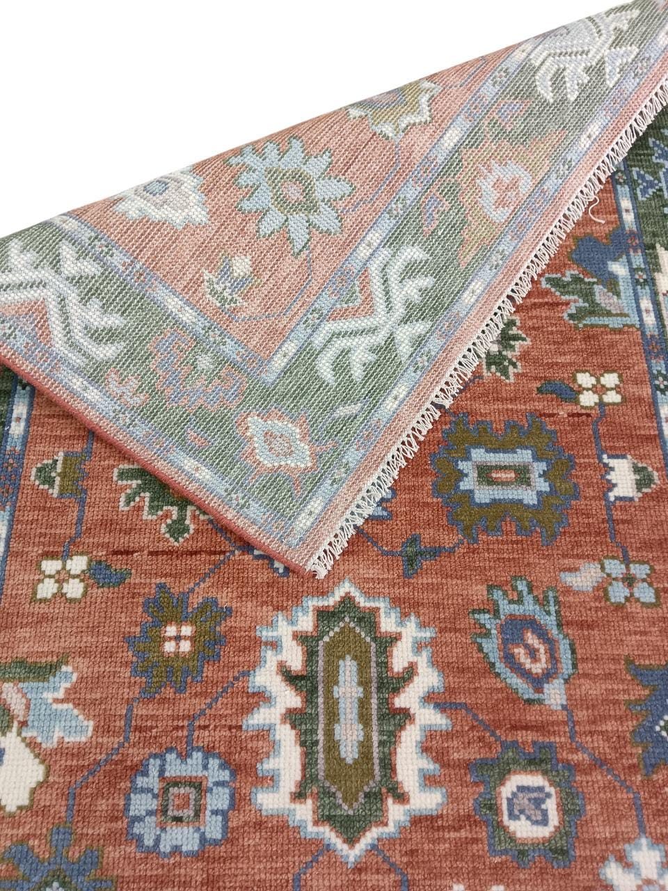 This expertly crafted hand made Oushak vintage handknotted rug is made with High Quality wool by artisan rug makers.