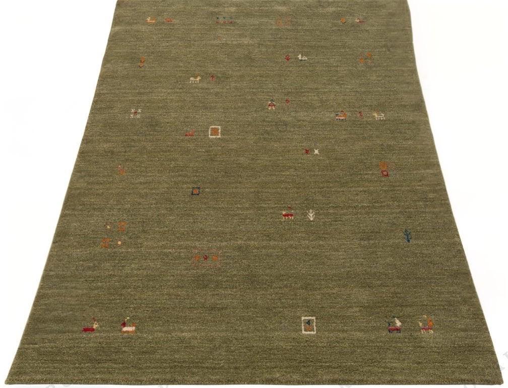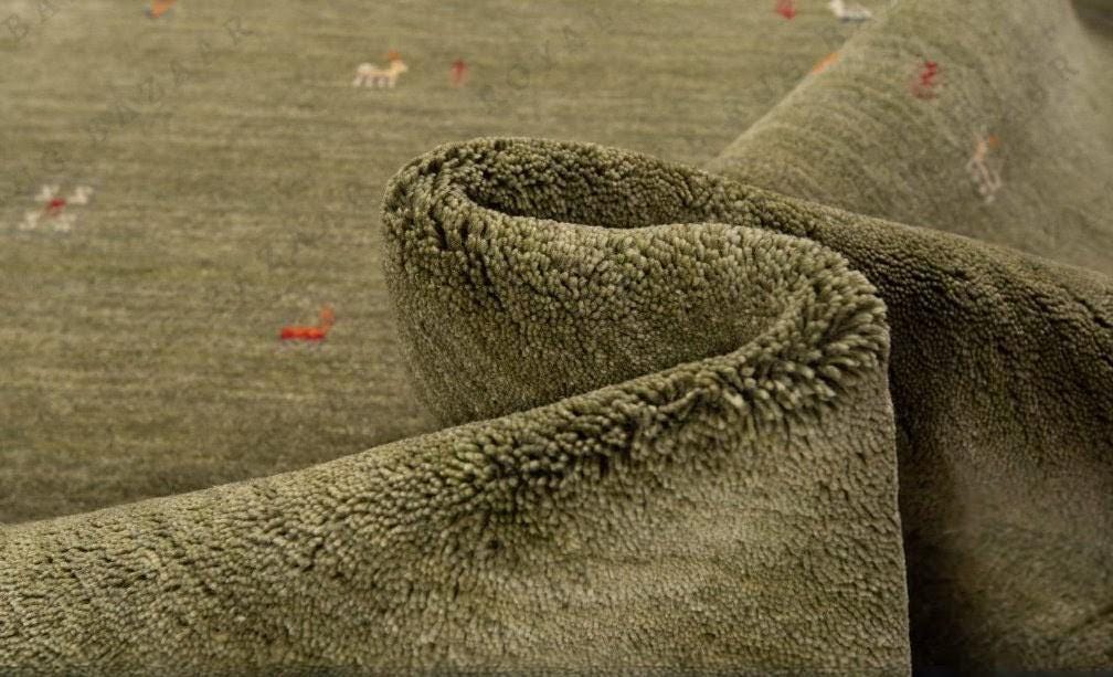 Handloom gabbeh moss green color wool for living room traditional rugs knot rugs
