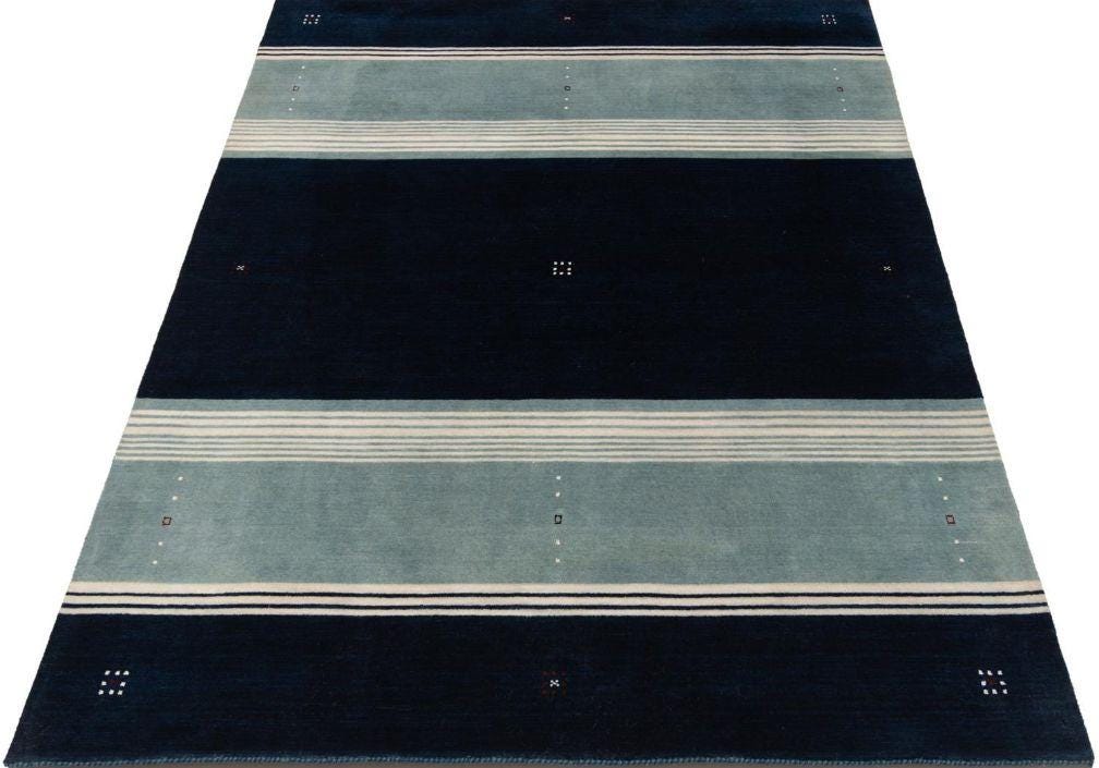 Handloom Gabbeh Wool Area Rug: stripe pattern Geometric Carpet, Artisan Made Handwoven Traditional weave Rug Bohemian rug Area rug knotted