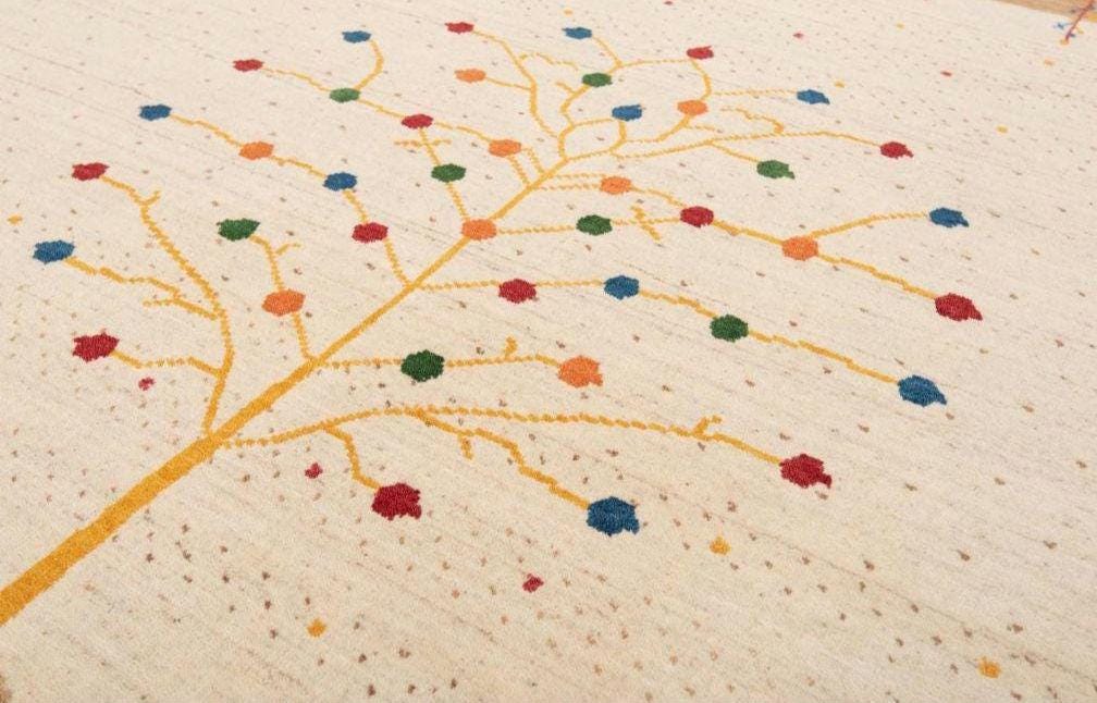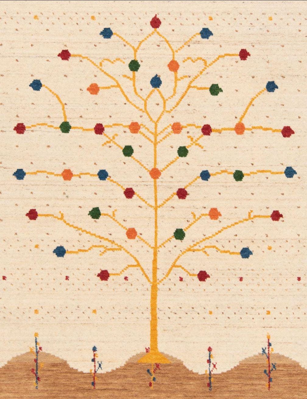 Tree pattern Handloom Gabbeh Wool Area Rug: Dark Blue Geometric Carpet, Artisan Made Handwoven Traditional weave Rug Bohemian rug knotted