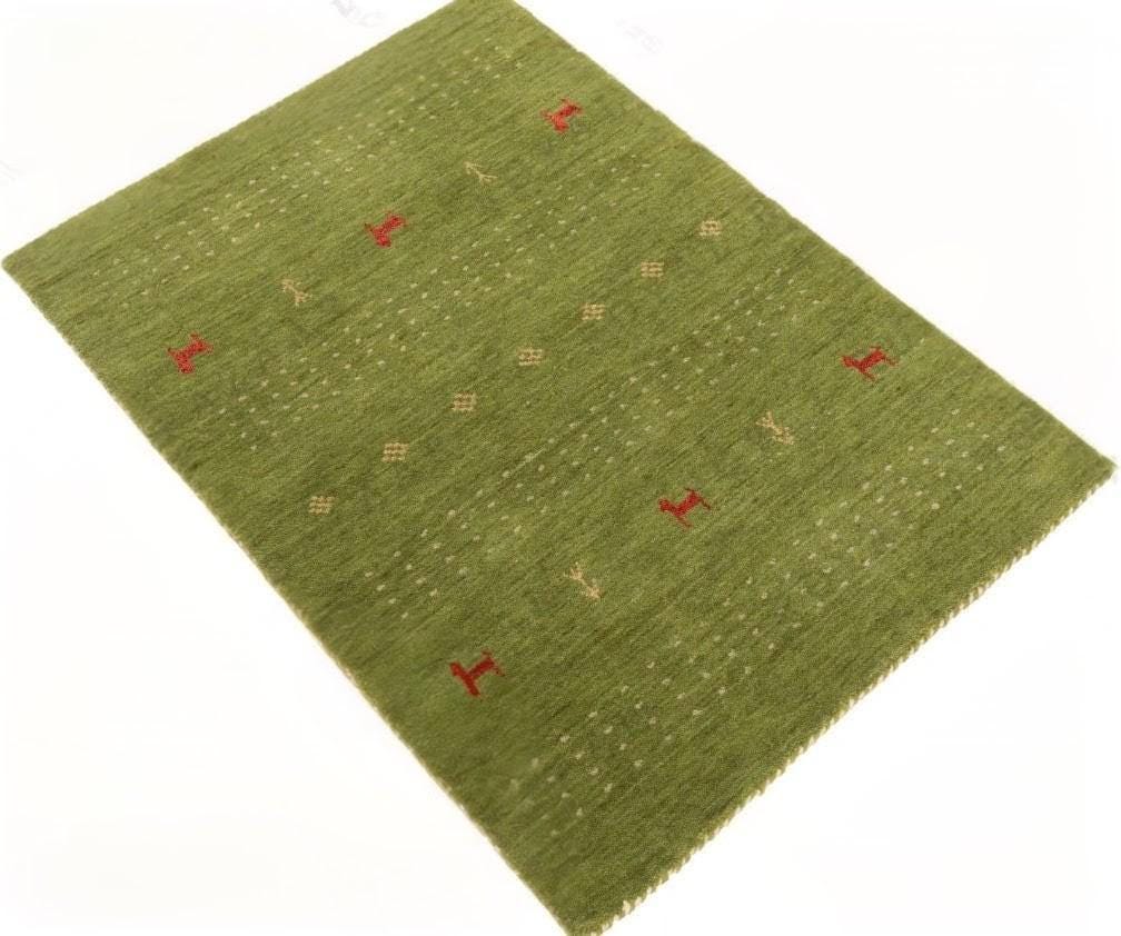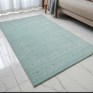 Handloom Gabbeh grass green Wool Area Rug: Dark Blue Geometric Carpet, Artisan Made Handwoven Traditional weave Rug Bohemian rug