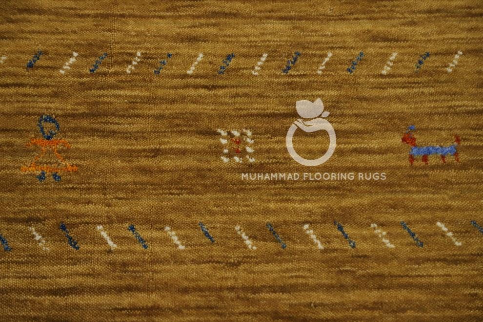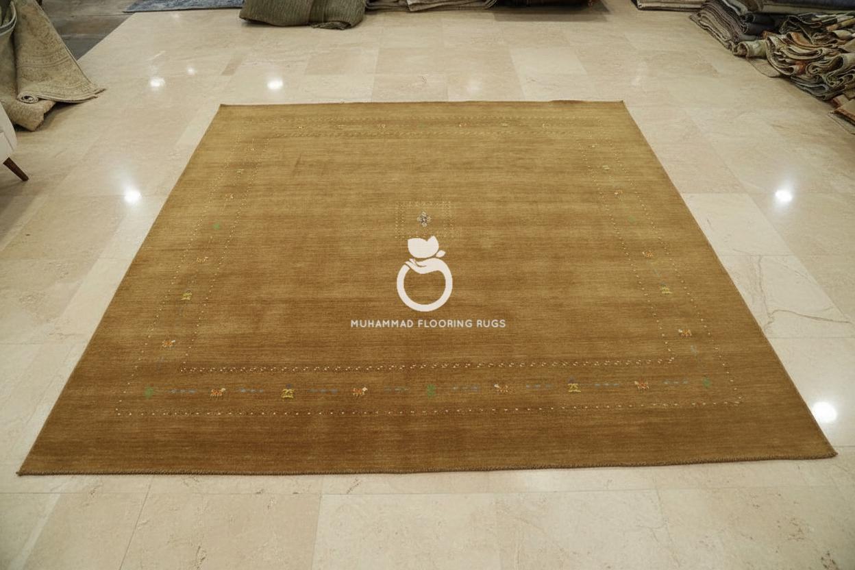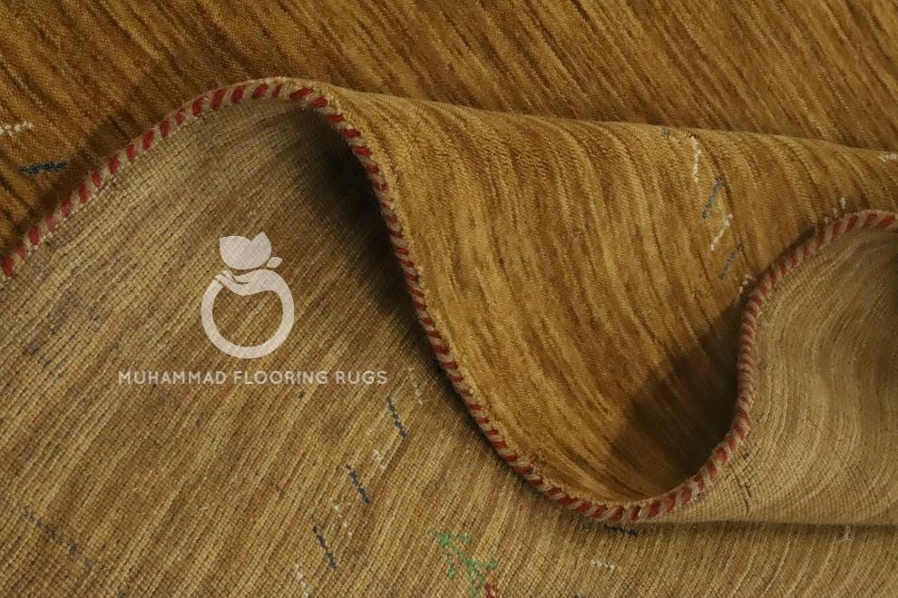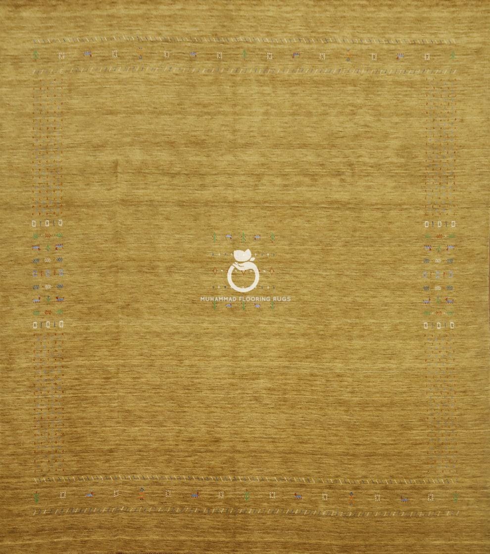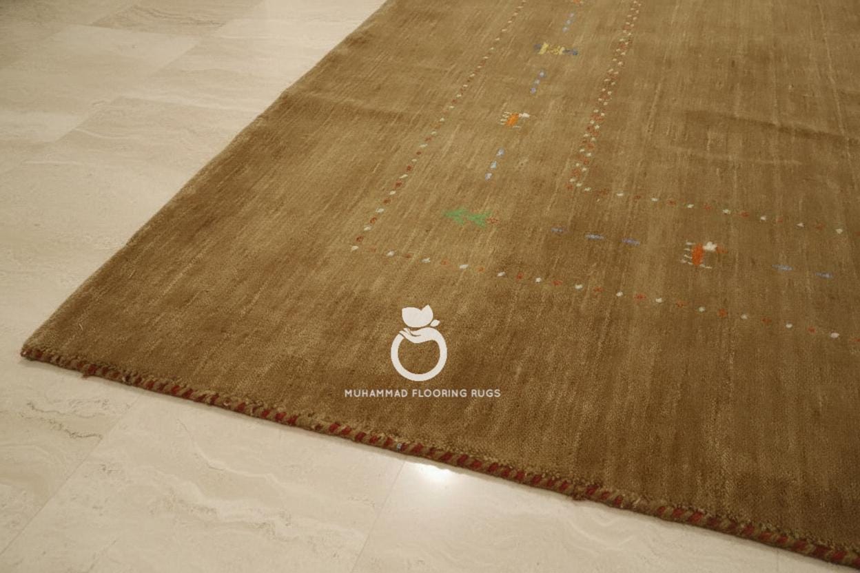 Minimal Bohemian Gabbeh Rug | Warm Gold Handmade Wool Carpet Modern Neutral Wool Rug | Hand-Knotted Golden Gabbeh | Subtle Accent Motif