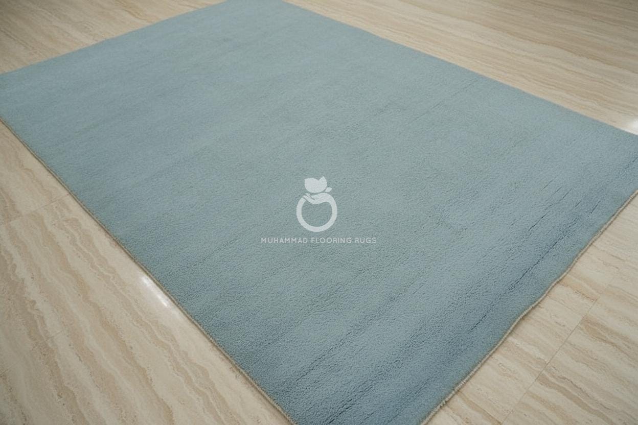 Aqua Blue Handmade Rug – Soft Wool Area Carpet Minimal Solid Modern Home Decor Handcrafted Solid Color Area Carpet for Living Room & Bedroom