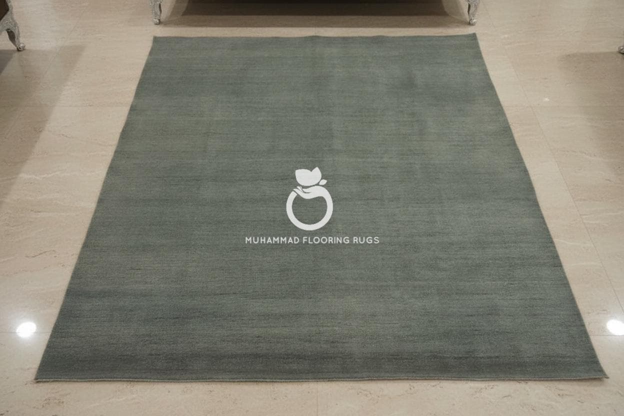 Grey Green Wool Rug – Handmade Solid Area Carpet, Modern Minimalist Floor Decor Solid Wool Area Carpet, Simple Modern Minimalist Style