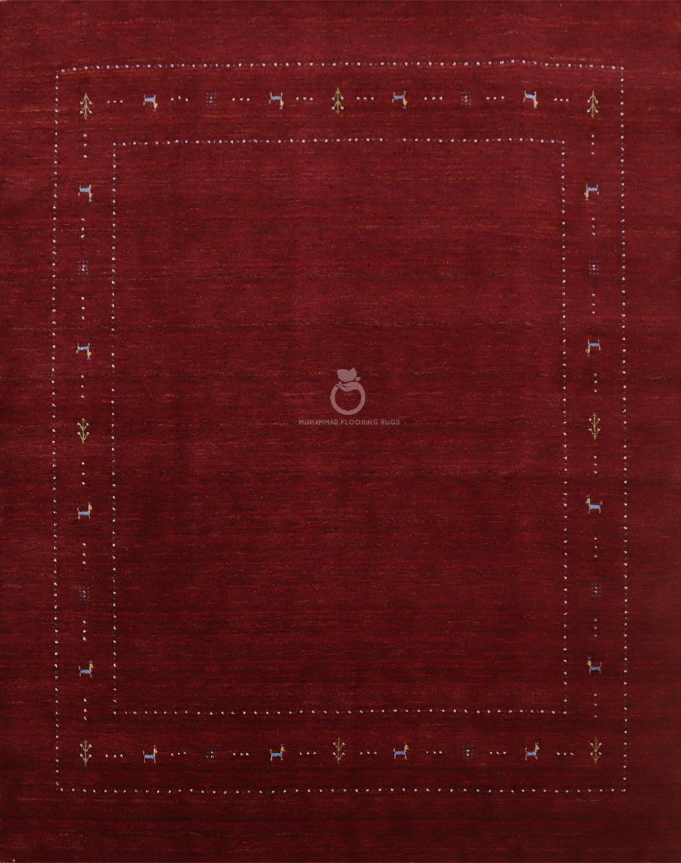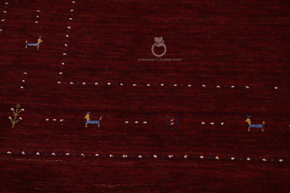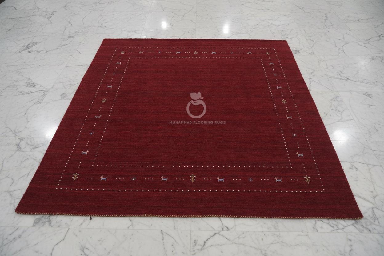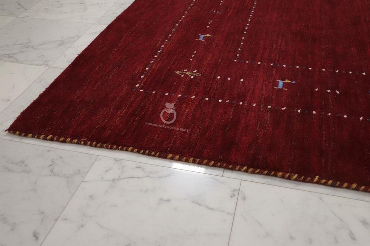 Hand Knotted Red Gabbeh Rug – Minimal Tribal Wool Carpet with Animal Motifs, Persian Style Living Room Rug loribaft rug traditional rug