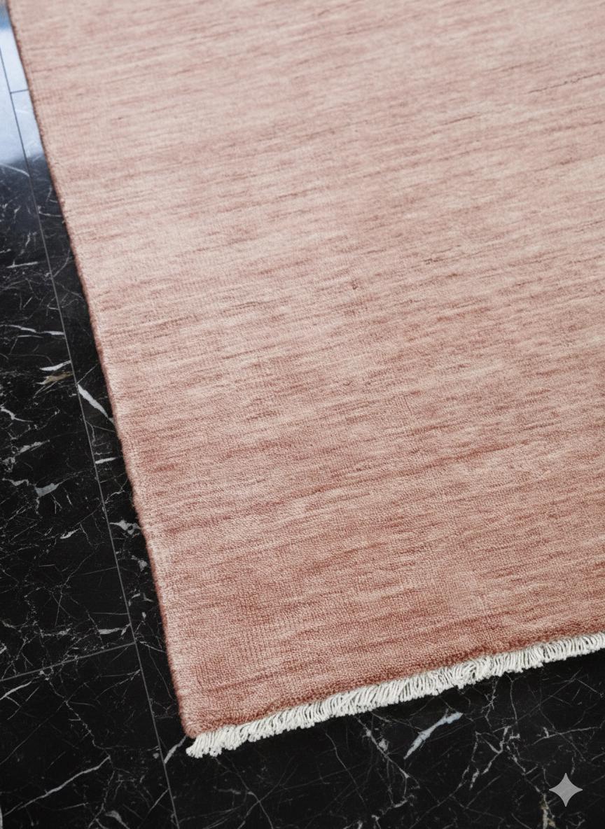 Blush Pink Gabbeh Rug Handloom | Solid Wool Area Rug | Modern Handmade Carpet Peach Gabbeh Rug with Fringe | Handwoven Plain Wool Rug | Bedr