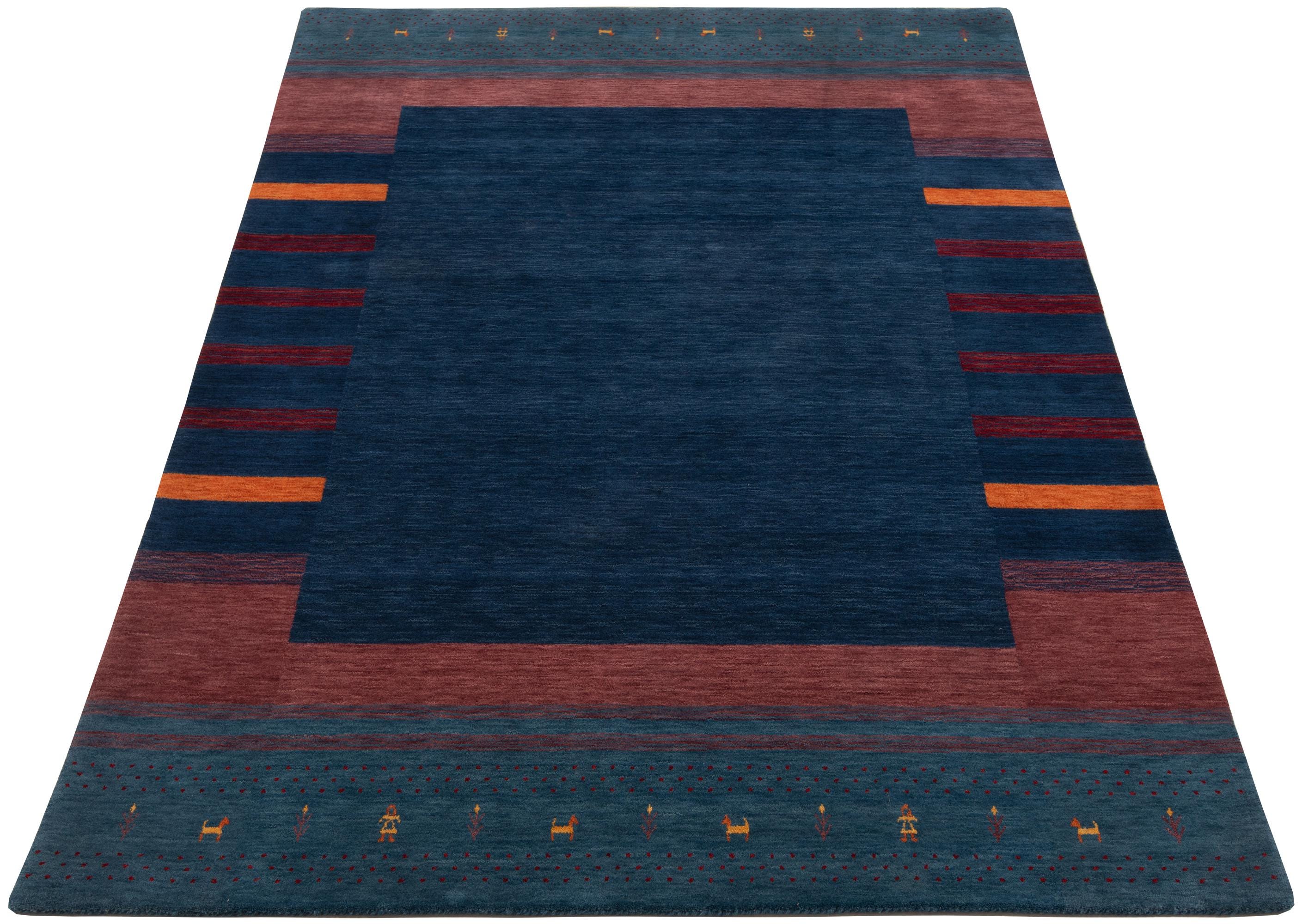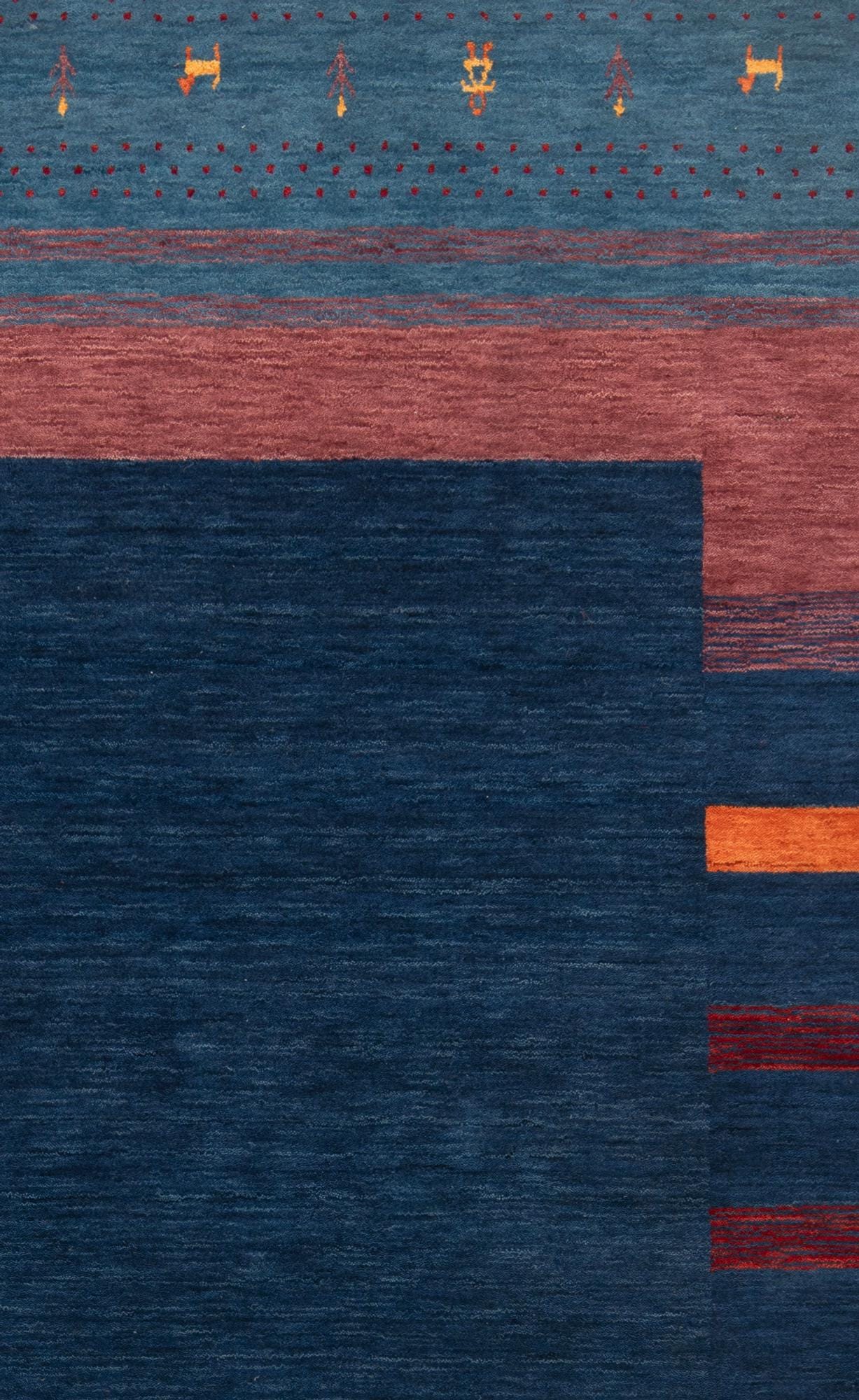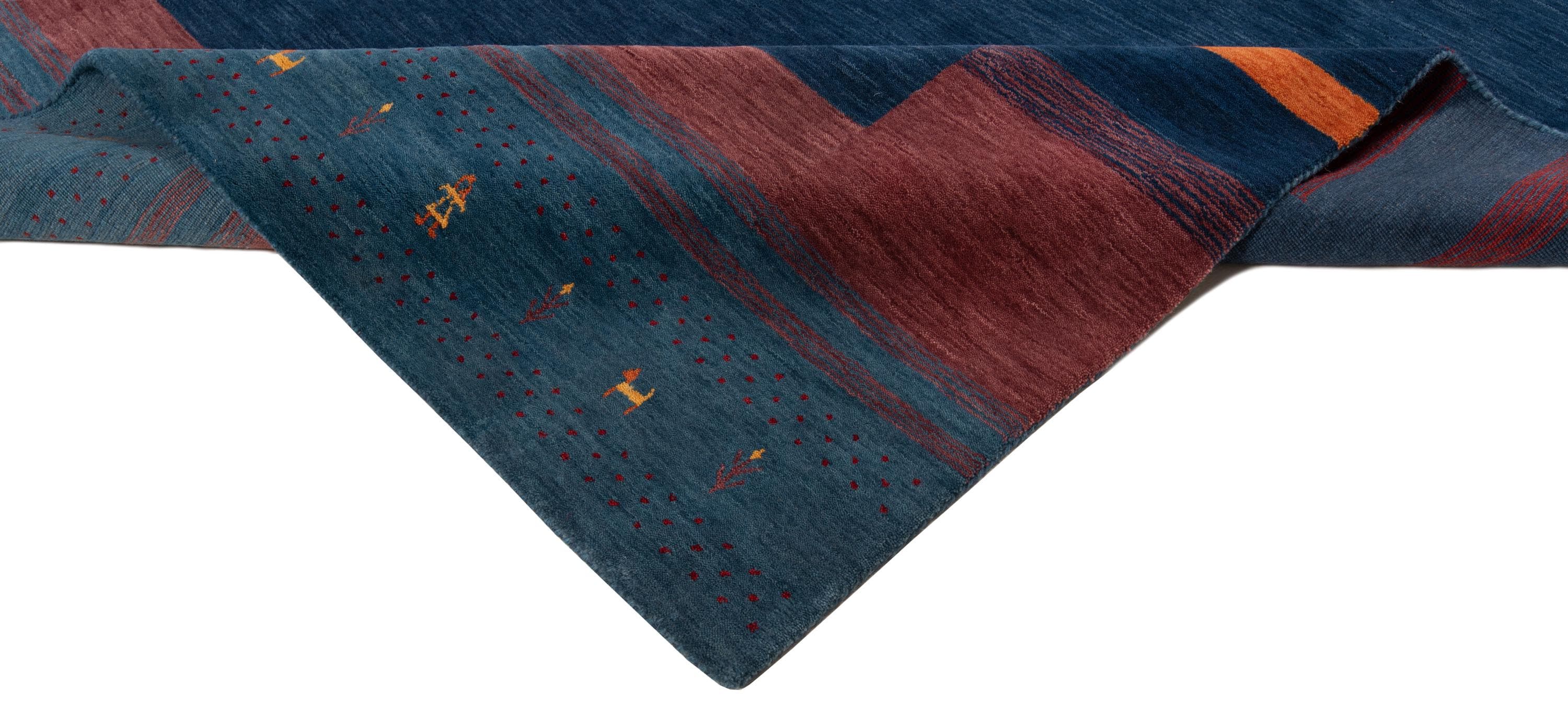Authentic Gabbeh Rug – Handmade Persian Style Wool Carpet with Animal Symbols Multicolor Border Wool Area Rug for Contemporary Home