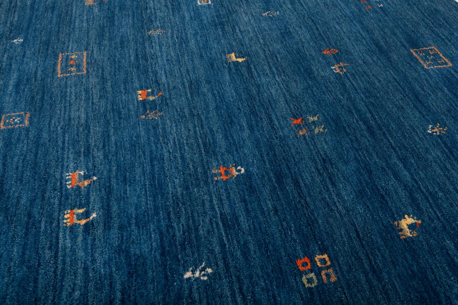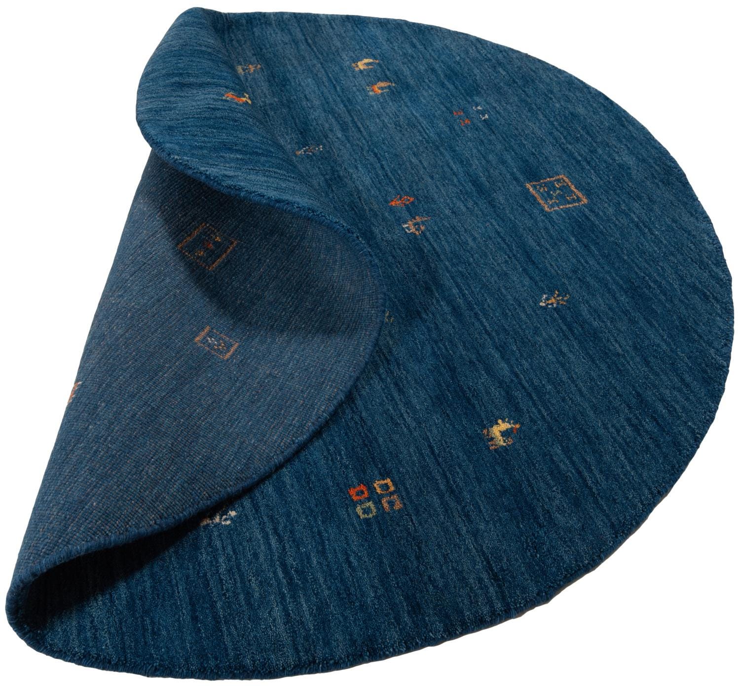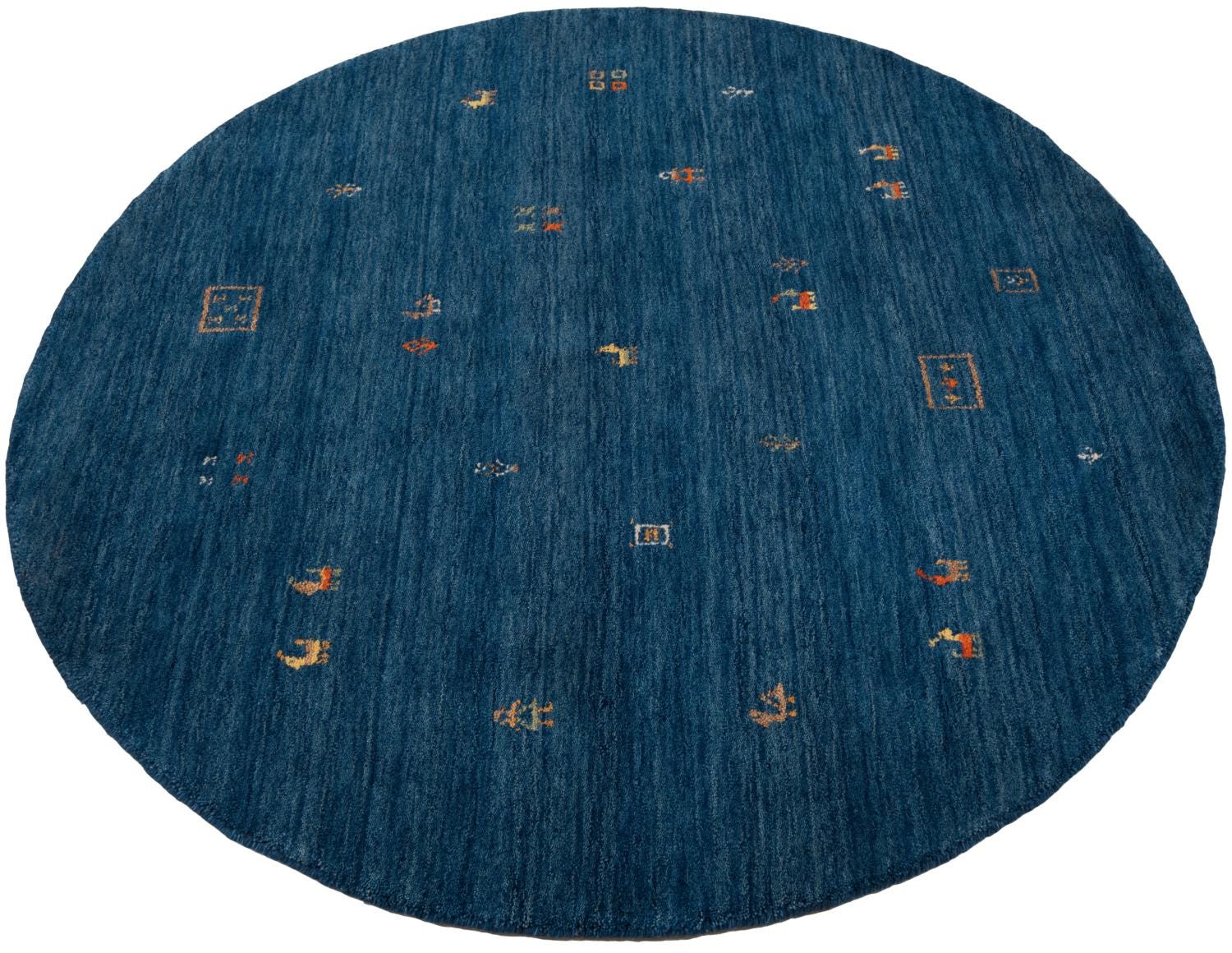 Handwoven Loribaft Round Rug – Deep Blue Wool Nomadic Tribal Floor Carpet Persian Wool Carpet handloom rug for living room bedroom animal