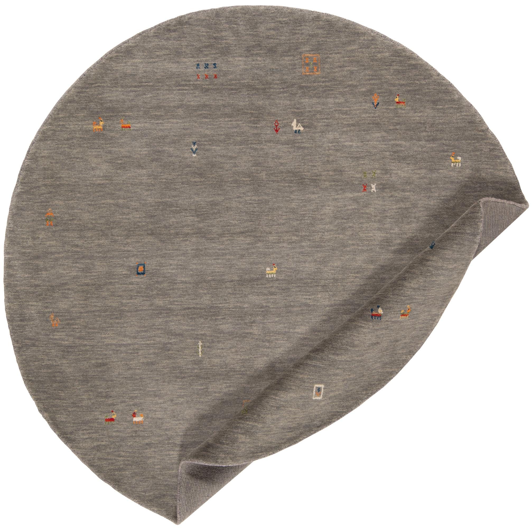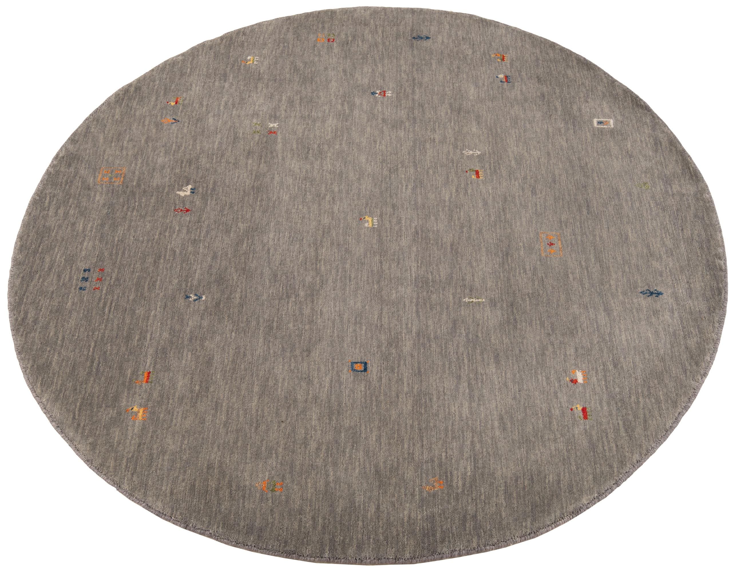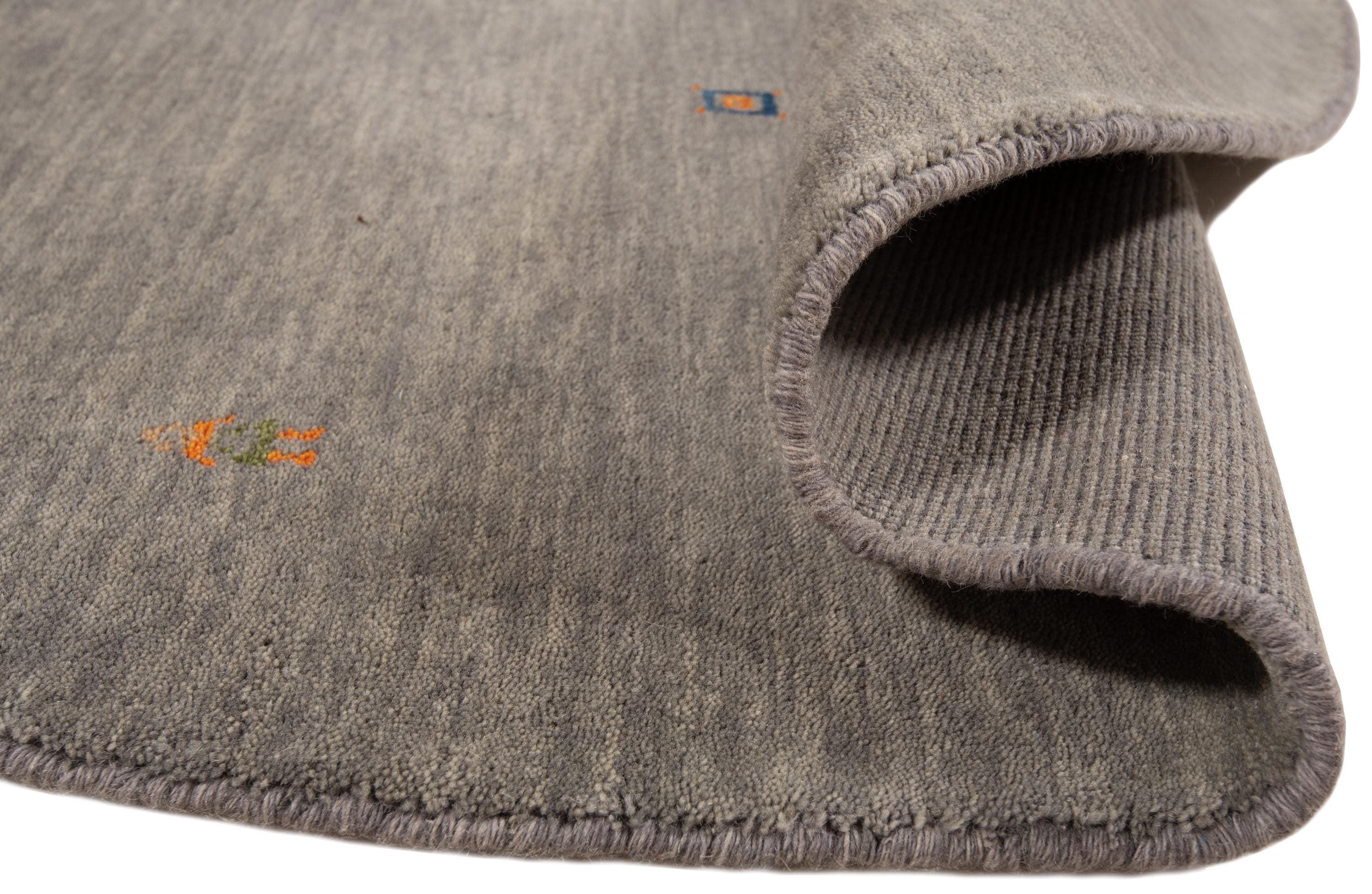 Minimal Round Wool Rug – Handmade Loribaft Grey Area Rug, Boho Scandinavian Floor Carpet Soft Grey Wool Tribal Gabbeh Carpet for living room